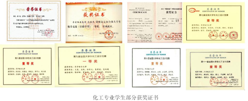 專業(yè)非常重視拓展學(xué)生的第二課堂教育。為提高學(xué)生的創(chuàng)新能力、工程素質(zhì)和工程實(shí)踐能力,專業(yè)從2009年起組織學(xué)生參加全國化工設(shè)計(jì)競賽,2010年承辦了第四屆全國大學(xué)生化工設(shè)計(jì)競賽華北賽區(qū)比賽,2017年承辦了第十一屆全國大學(xué)生化工設(shè)計(jì)競賽東北賽區(qū)比賽;2012年作為理事長單位發(fā)起并組織了黑龍江省“化工設(shè)計(jì)競賽”實(shí)踐實(shí)訓(xùn)平臺(tái),并承辦了黑龍江省首屆、第五屆大學(xué)生化工設(shè)計(jì)競賽。截止至2020年,我校學(xué)生連續(xù)12年晉級(jí)全國總決賽,獲得全國化工設(shè)計(jì)競賽一等獎(jiǎng)10項(xiàng)、二等獎(jiǎng)9項(xiàng)、三等獎(jiǎng)12項(xiàng);共獲黑龍江省化工設(shè)計(jì)競賽獎(jiǎng)項(xiàng)53項(xiàng),其中特等獎(jiǎng)14項(xiàng)。