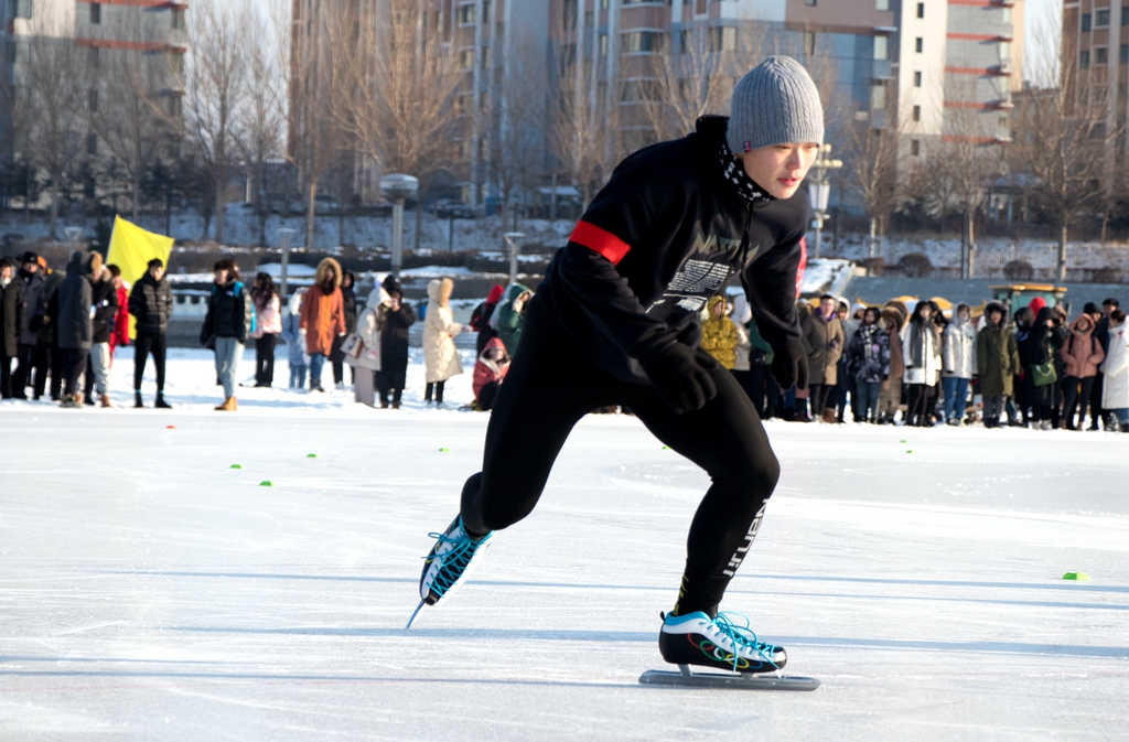 本屆冰上運(yùn)動(dòng)會(huì)單項(xiàng)比賽采用國(guó)家體育總局冬運(yùn)中心審定的最新的《速度滑冰競(jìng)賽規(guī)則》,設(shè)置了單項(xiàng)比賽“男子500米、女子500米速滑”競(jìng)賽項(xiàng)目,設(shè)置了“定時(shí)快撿小布球20個(gè)”、“纖夫拉爬犁50米”、“繞樁蛇形滑接力”等游戲項(xiàng)目,吸引了眾多同學(xué)的熱情參與,充分體現(xiàn)了冰上運(yùn)動(dòng)會(huì)的群眾性和廣泛性。