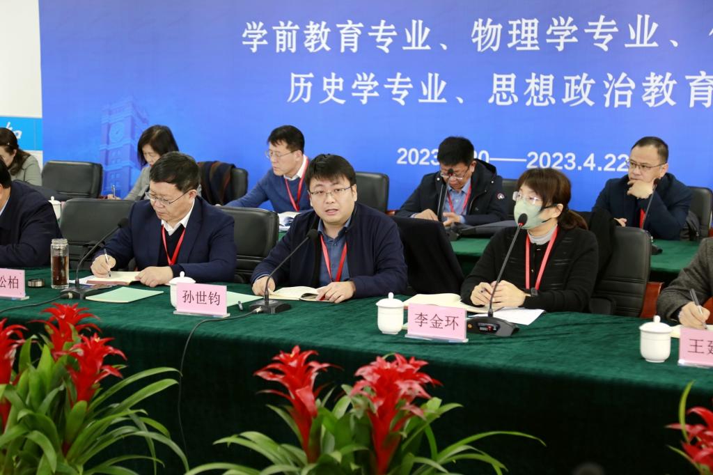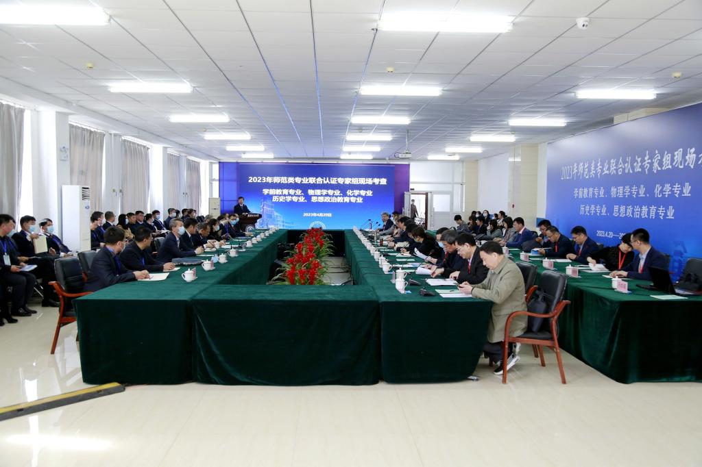 4月20日上午,專家組見面會在東區(qū)圖書館八樓報告廳舉行。本次認證專家組聯(lián)合大組長兼學(xué)前教育專業(yè)專家組組長齊魯師范學(xué)院林松柏教授及成員河北師范大學(xué)龔蓉副教授、鞍山師范學(xué)院劉巖教授、渾南區(qū)奉天首府幼兒園賈洪揚副教授;物理學(xué)專業(yè)認證專家組組長東北師范大學(xué)李金環(huán)教授及成員鹽城師范學(xué)院陳玉祥教授、四川師范大學(xué)周曉林教授、牡丹江市教育研究院郭世杰研究員;化學(xué)專業(yè)認證專家組組長河南師范大學(xué)陳廣文教授及成員浙江師范大學(xué)趙雷洪教授、內(nèi)蒙古師范大學(xué)王喜貴教授、江蘇省新海高級中學(xué)正高級教師韓金山;歷史學(xué)專業(yè)認證專家組組長浙江工商大學(xué)施建祥教授及成員華中師范大學(xué)胡中波教授、內(nèi)蒙古民族大學(xué)田明教授、佳木斯市教育局于慶澎研究員;思想政治教育專業(yè)認證專家組組長華南師范大學(xué)王建平研究員及成員北華大學(xué)劉衛(wèi)東教授、嘉興學(xué)院丁連生教授、佳木斯市第一中學(xué)朱可蘇特級教師;項目管理員黑龍江省教育評估院張立明老師出席會議。省教育廳高教處處長孫世鈞,高教評估觀察員黑龍江中醫(yī)藥大學(xué)基礎(chǔ)醫(yī)學(xué)院殷越教授出席會議。