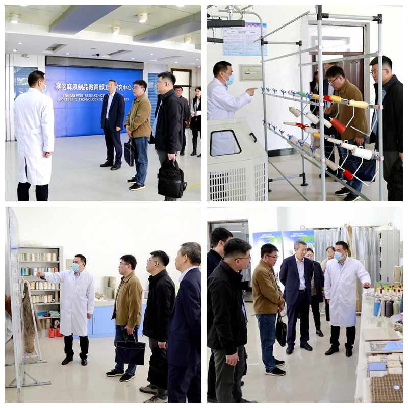 調(diào)研中,張洪波一行實(shí)地考察了我校寒區(qū)麻及制品教育部工程研究中心。輕工與紡織學(xué)院黨委書記、中心副主任宋秘釗介紹了中心開(kāi)展科技創(chuàng)新和成果轉(zhuǎn)化等方面情況。
