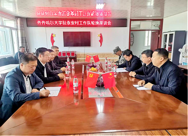 5月16日,學校黨委副書記張文治帶隊赴拜泉縣上升鄉(xiāng)永安村,送新一輪駐村工作隊員到崗并召開見面座談會。