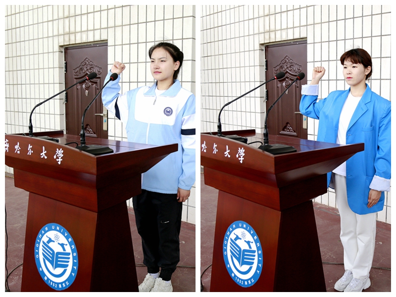 運動員代表教師教育學(xué)院學(xué)前教育專業(yè)203班張思琪代表全體運動員宣誓,裁判員代表體育學(xué)院體育教育專業(yè)212班邱楠楠同學(xué)同學(xué)代表全體裁判員宣誓。