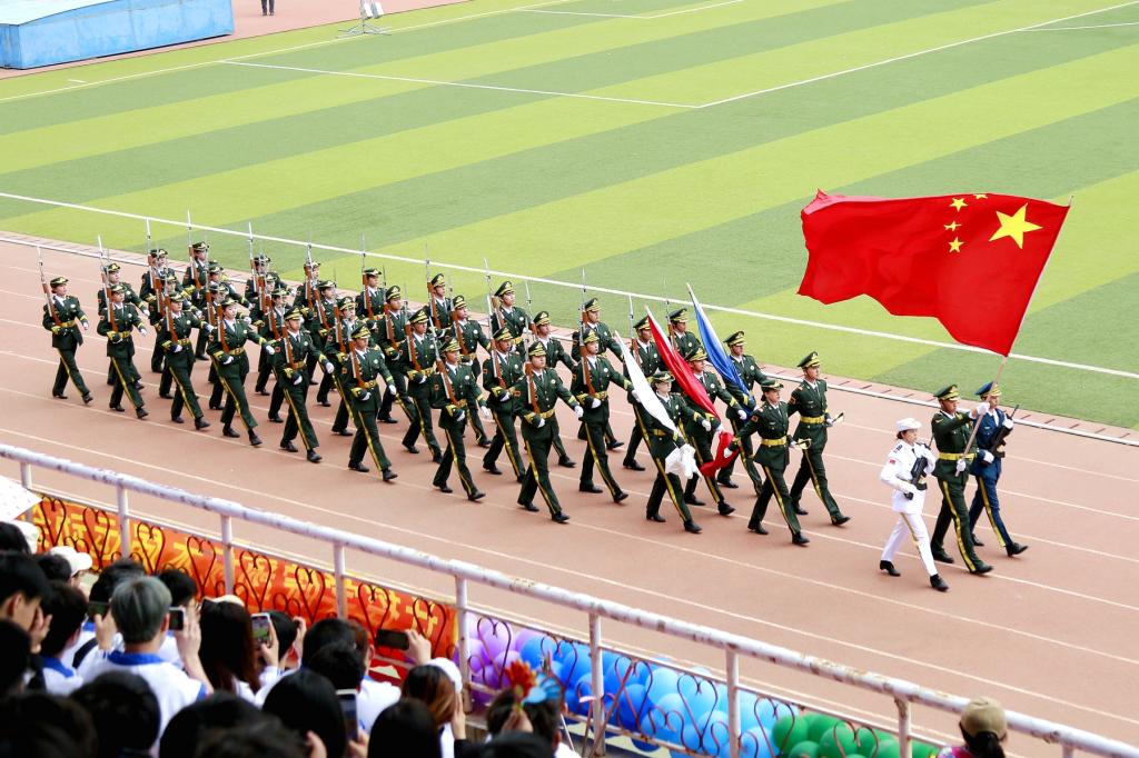 伴隨著雄壯的運動員進(jìn)行曲,包括前導(dǎo)隊、裁判員隊伍、機關(guān)及各學(xué)院代表隊在內(nèi)的26個檢閱隊伍依次走過主席臺,接受大會檢閱。檢閱人員服裝整齊,精神飽滿,口號響亮,展現(xiàn)了我校師生良好的精神風(fēng)貌。