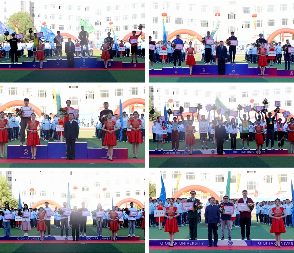 在本屆運(yùn)動(dòng)會(huì)上,研究生部、教師教育學(xué)院、經(jīng)濟(jì)與管理學(xué)院、材料科學(xué)與工程學(xué)院、通信與電子工程學(xué)院、計(jì)算機(jī)與控制工程學(xué)院榮獲學(xué)生組團(tuán)體總分前六名;機(jī)關(guān)、后勤管理處、化學(xué)與化學(xué)工程學(xué)院、材料科學(xué)與工程學(xué)院、公共外語(yǔ)教研部、食品與生物工程學(xué)院獲教工組團(tuán)體總分前六名;教師教育學(xué)院、計(jì)算機(jī)與控制工程學(xué)院、機(jī)電工程學(xué)院分別獲得學(xué)生團(tuán)體操比賽一、二、三等獎(jiǎng);研究生部盧思吉等10名同學(xué)榮獲“十佳運(yùn)動(dòng)員”稱(chēng)號(hào);教師教育學(xué)院、音樂(lè)與舞蹈學(xué)院、經(jīng)濟(jì)與管理學(xué)院、美術(shù)與藝術(shù)設(shè)計(jì)學(xué)院、馬克思主義學(xué)院、計(jì)算機(jī)與控制工程學(xué)院、生命科學(xué)與農(nóng)林學(xué)院、文學(xué)與歷史文化學(xué)院(新聞傳播學(xué)院)等8個(gè)單位榮獲“體育道德風(fēng)尚獎(jiǎng)”;體育學(xué)院、理學(xué)院、齊齊哈爾大學(xué)國(guó)旗護(hù)衛(wèi)隊(duì)榮獲“特殊貢獻(xiàn)獎(jiǎng)”;研究生部運(yùn)動(dòng)訓(xùn)練領(lǐng)域2021級(jí)盧思吉同學(xué)打破了塵封四十年之久的女子3000米校紀(jì)錄。