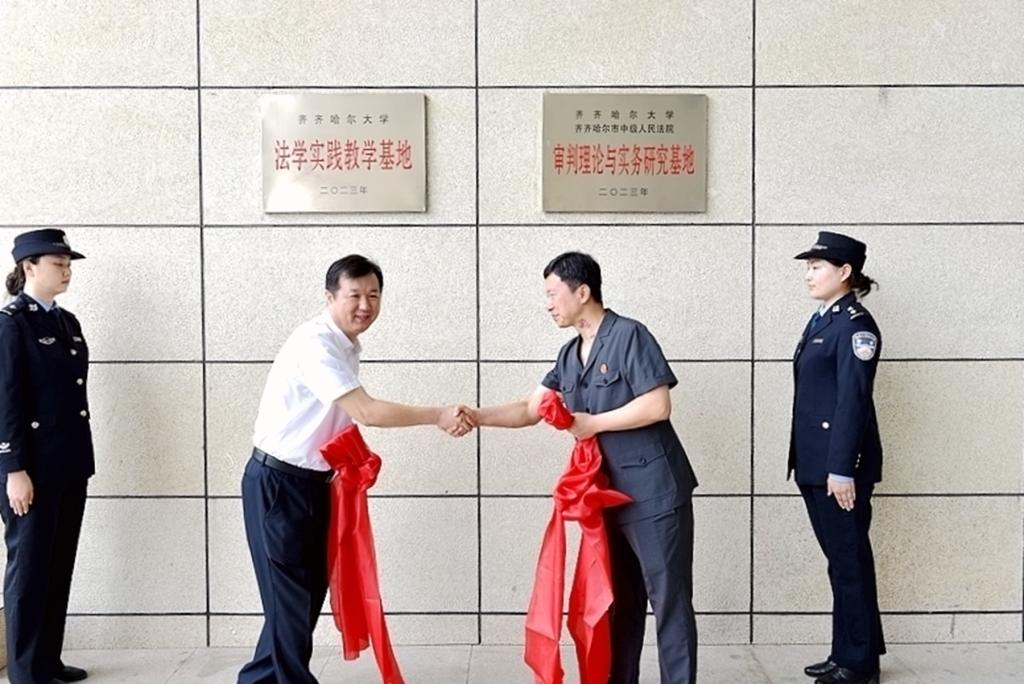 李奇楠和朱衛(wèi)國共同為“齊齊哈爾大學(xué)法學(xué)實(shí)踐教學(xué)基地”和“齊齊哈爾大學(xué)審判理論與實(shí)務(wù)研究基地”揭牌。