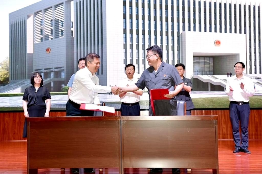 哲學(xué)與法學(xué)學(xué)院院長伊全勝代表我校和齊齊哈爾市中級人民法院政治部主任李文孝簽訂了《齊齊哈爾大學(xué)-齊齊哈爾市中級人民法院校院合作協(xié)議》。