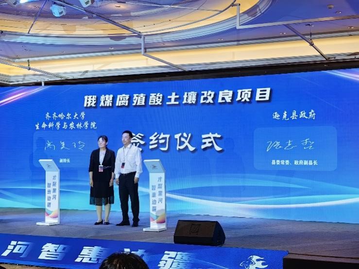 活動期間,高美玲教授與遜克縣政府簽訂了《俄煤腐殖酸土壤改良項目》合作協(xié)議。