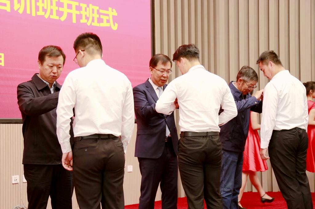 校領(lǐng)導(dǎo)為2023年新教師代表佩戴校徽