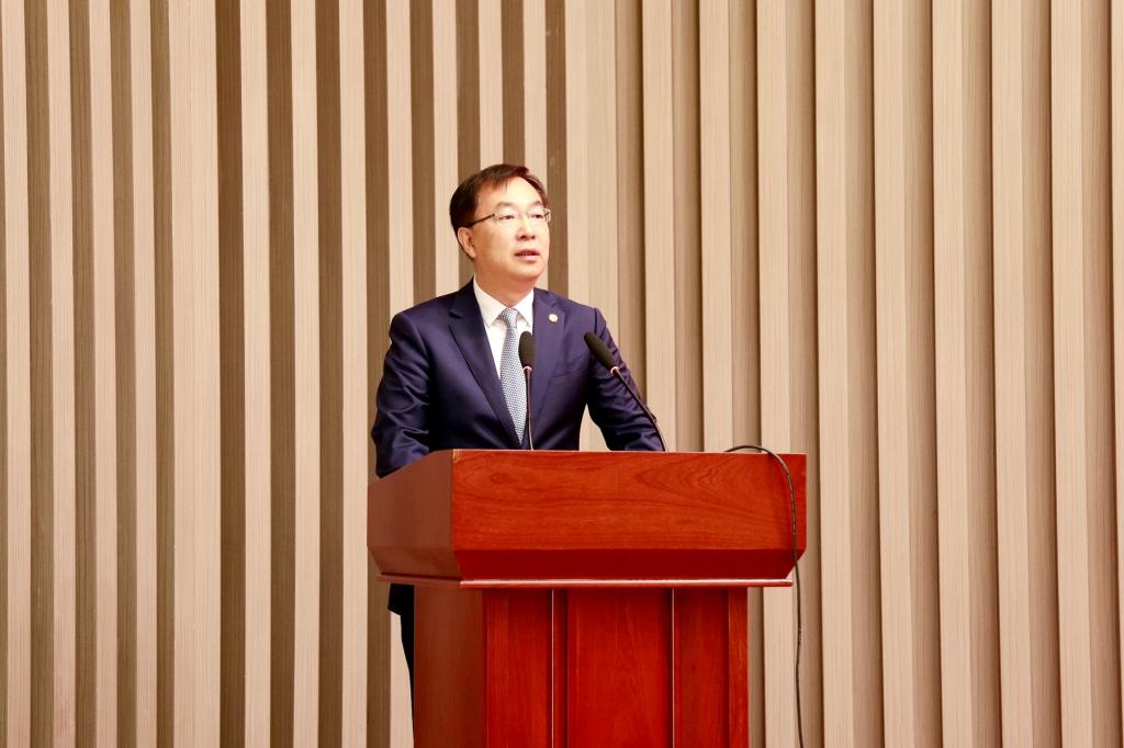 郝文斌在講話中代表學(xué)校向完成培訓(xùn)并順利結(jié)業(yè)的2022年來校工作的青年教師表示衷心的祝賀,向2023年新入職的青年教師表示熱烈的歡迎,并結(jié)合多年從教工作經(jīng)歷,圍繞“如何做一名合格的齊大教師”與大家進行了交流,對學(xué)校青年教師提出了三點要求和希望:第一,要賡續(xù)傳承“齊大精神”,做薪火相傳的新時代齊大人;第二,要躬身踐行教師誓言,做愛教樂教的新時代筑夢人;第三,要加快充實完善自己,做學(xué)高為師、實干報國的優(yōu)秀教師。
