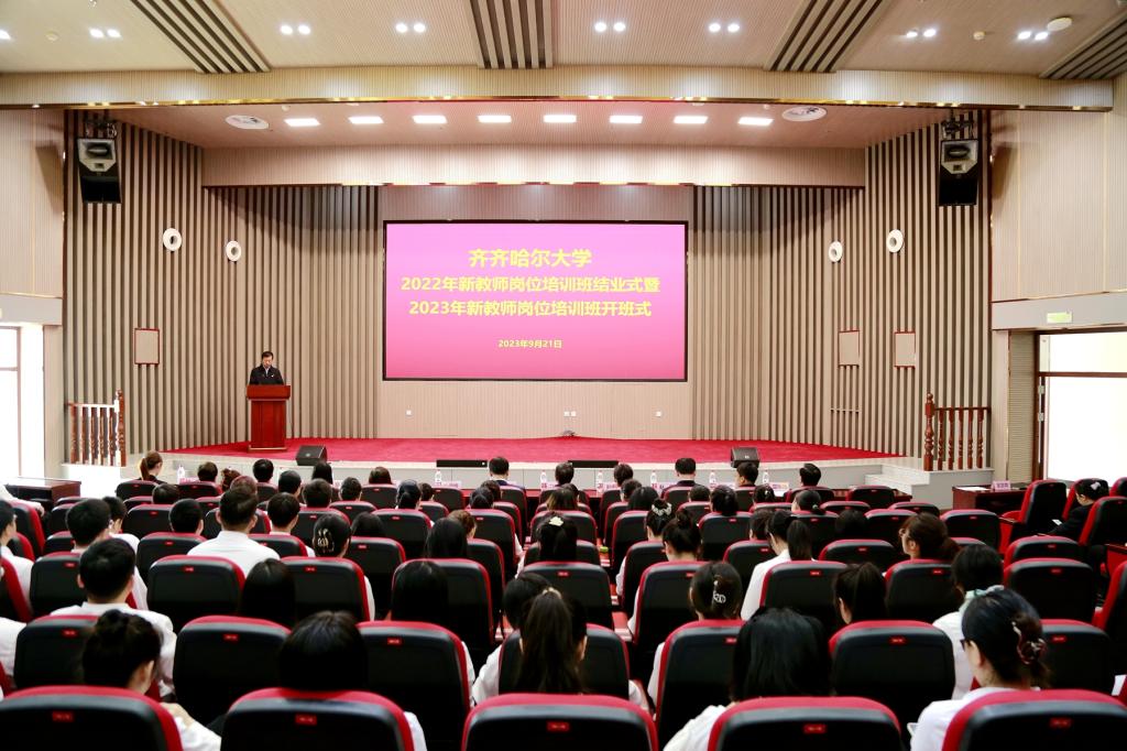9月21日上午,齊齊哈爾大學(xué)2022年新教師崗位培訓(xùn)班結(jié)業(yè)式暨2023年新教師崗位培訓(xùn)班開班式在日新大廈四樓會議室舉行。校長、黨委副書記郝文斌,副校長、黨委常委張樹軍,副校長李奇楠出席儀式。相關(guān)部門負責(zé)人及2022年新教師崗位培訓(xùn)班結(jié)業(yè)學(xué)員代表和2023年新教師崗位培訓(xùn)班學(xué)員參加儀式。儀式由李奇楠主持。
