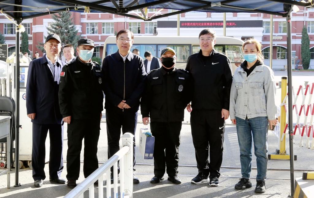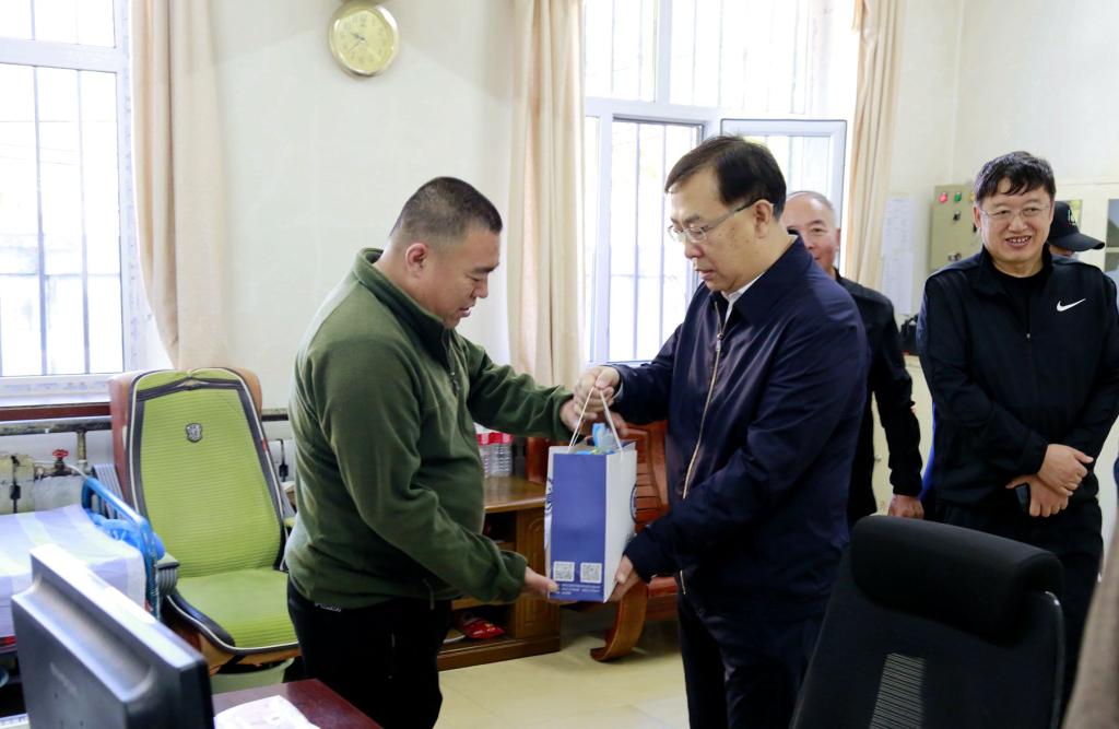 郝文斌一行先后來到中區(qū)大門、辦公樓門衛(wèi)室、??傊蛋嗍?、校110服務(wù)中心、中區(qū)綜合泵房、守正樓門衛(wèi)室、南校區(qū)大學(xué)生科技園、西二區(qū)變電所、學(xué)生公寓8號樓等地,現(xiàn)場檢查了假期校園安全管控情況,代表學(xué)校為堅守崗位的一線教職員工代表送去了慰問品,向他們的辛勤勞動致敬,并對相關(guān)部門進一步做好校園安全及后勤保障工作提出了希望和要求。