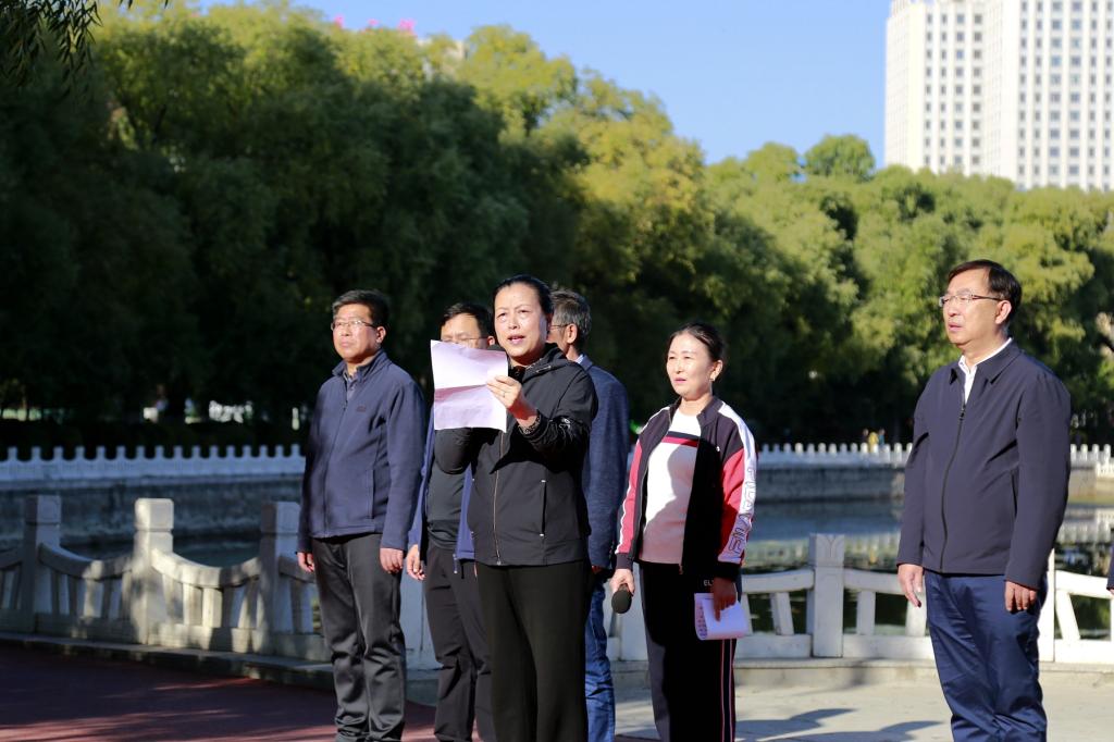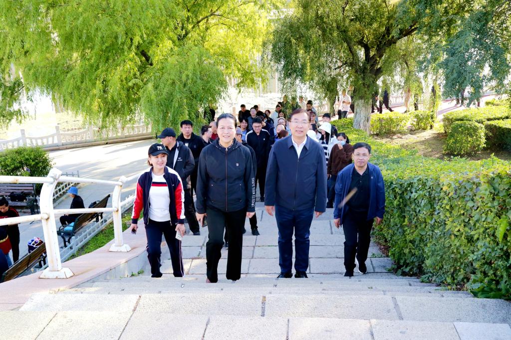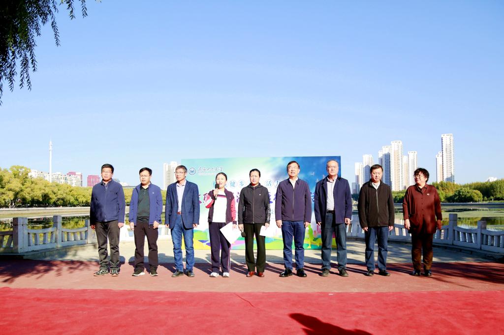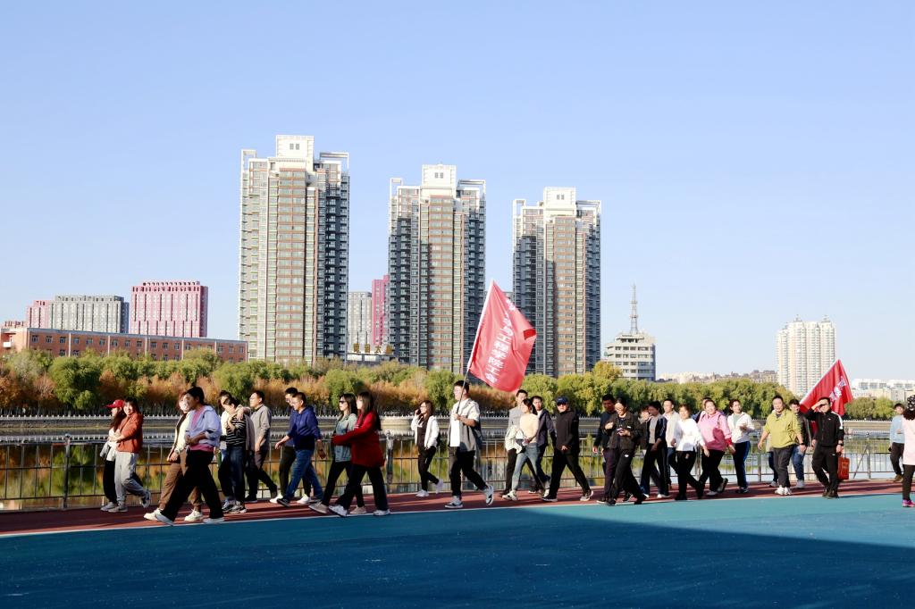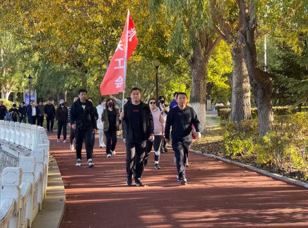 校長、黨委副書記郝文斌宣布活動開始,伴隨著發(fā)令槍聲,各基層工會依次列隊出發(fā)。環(huán)湖甬道上旗幟飄揚、人影攢動、身姿矯健,大家在指定地標建筑打卡、拍照,齊大人徒步運動成為秋日勞動湖畔一道亮麗的風(fēng)景線。