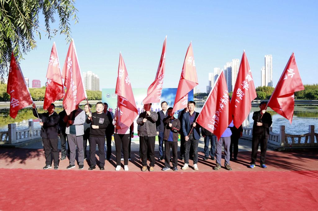 活動出發(fā)前,參加活動的領(lǐng)導(dǎo)為各基層工會授旗。