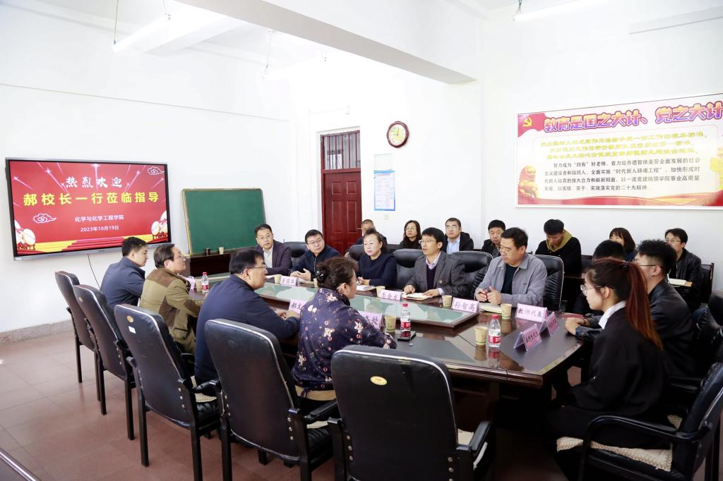 10月19日上午,校長(zhǎng)郝文斌在相關(guān)部門負(fù)責(zé)人陪同下,深入化學(xué)與化學(xué)工程學(xué)院調(diào)研?;瘜W(xué)與化學(xué)工程學(xué)院班子成員、各系部(中心)主任、學(xué)術(shù)骨干、輔導(dǎo)員代表、研究生和本科生代表參加調(diào)研座談會(huì)。