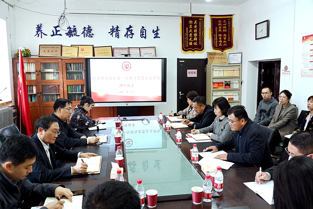 10月19日下午,校長郝文斌在相關(guān)部門負(fù)責(zé)人陪同下,深入馬克思主義學(xué)院調(diào)研指導(dǎo)學(xué)院建設(shè)工作,征集學(xué)院干部師生對學(xué)校建設(shè)、改革與發(fā)展的意見和建議。