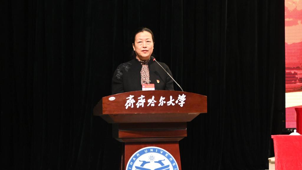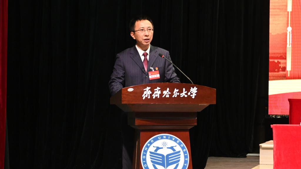 學(xué)校黨委書記陳桂芝代表學(xué)校黨委對本次大會的召開表示熱烈祝賀。她在講話中指出,自學(xué)校第五次學(xué)生代表大會暨第三次研究生代表大會召開一年來,我校學(xué)生會和研究生會堅(jiān)持以習(xí)近平新時(shí)代中國特色社會主義思想為指導(dǎo),認(rèn)真貫徹落實(shí)學(xué)校黨委和上級學(xué)聯(lián)工作要求,緊緊圍繞學(xué)校中心工作,服務(wù)大局、服務(wù)師生,團(tuán)結(jié)帶領(lǐng)廣大青年學(xué)生,在深化學(xué)生會組織改革、促進(jìn)教育教學(xué)、加強(qiáng)校風(fēng)學(xué)風(fēng)、豐富校園文化、助力學(xué)生成長成才等方面做了大量卓有成效的工作,為學(xué)校的建設(shè)和發(fā)展貢獻(xiàn)了青春力量。全校廣大青年學(xué)生要始終牢記習(xí)近平總書記的殷切囑托,堅(jiān)定不移聽黨話、矢志不渝跟黨走,叫響做實(shí)“身在最北方、心向黨中央”的忠誠誓言,心有所向、志存高遠(yuǎn),做有理想的新時(shí)代齊大青年;敢為人先、迎難而上,做敢擔(dān)當(dāng)?shù)男聲r(shí)代齊大青年;百折不撓、剛健有為,做能吃苦的新時(shí)代齊大青年;拼搏進(jìn)取、勇毅前行,做肯奮斗的新時(shí)代齊大青年,以實(shí)際行動推進(jìn)我校有特色高水平應(yīng)用型綜合大學(xué)建設(shè)事業(yè),全力服務(wù)黑龍江高質(zhì)量發(fā)展、可持續(xù)振興,在強(qiáng)國建設(shè)、民族復(fù)興新征程上,凝心聚力跟黨走、踔厲奮發(fā)建新功!
