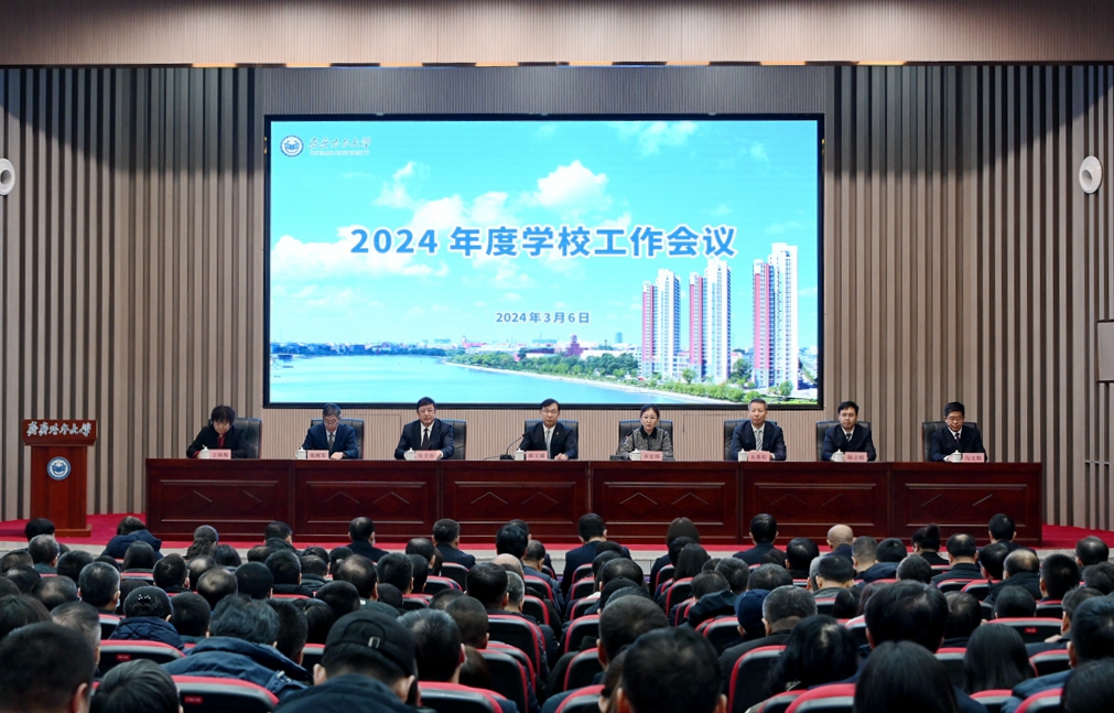 3月6日上午,學校2024年度工作會議在日新大廈四樓學術(shù)報告廳召開,學校領(lǐng)導班子成員出席會議,全校副處級以上干部、省級重點學科帶頭人、民主黨派負責人、無黨派人士、“兩代表一委員”參加會議。會議由校黨委副書記齊宏偉主持。