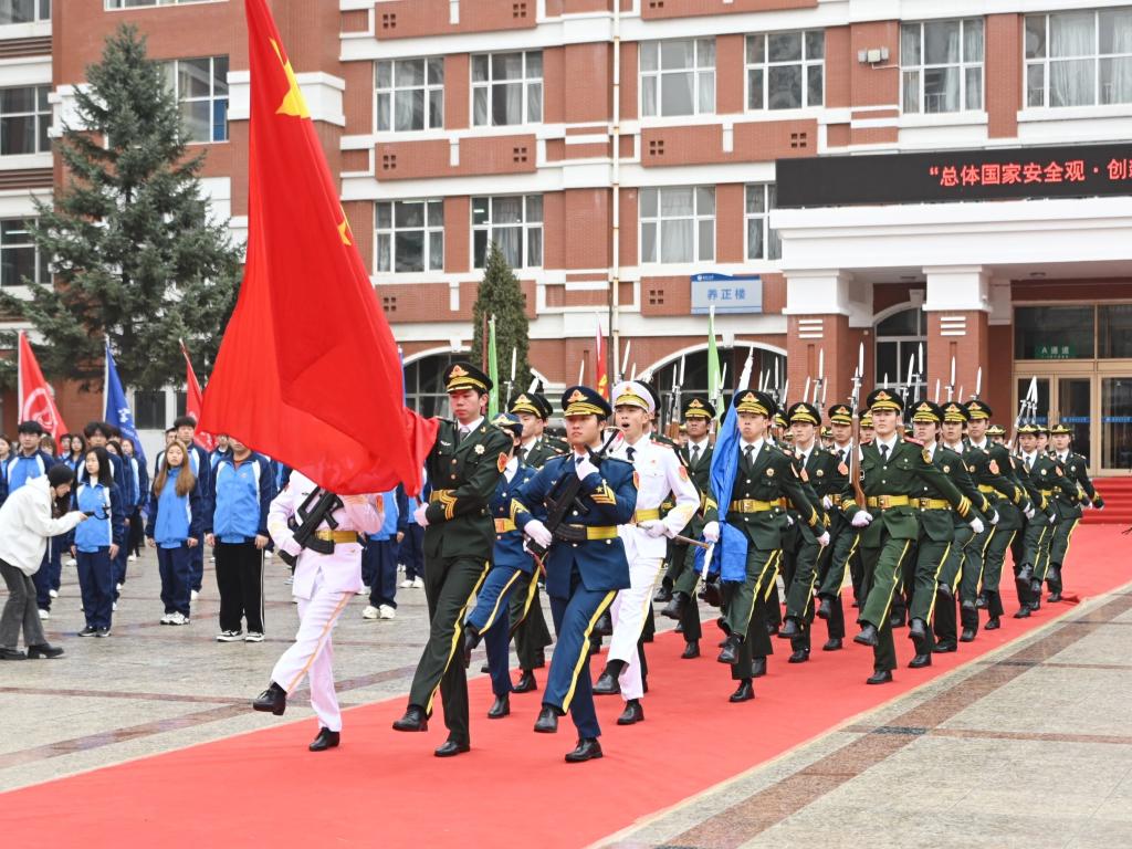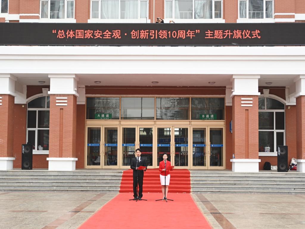 今年是習近平總書記提出總體國家安全觀10周年,今年的4月15日是第九個全民國家安全教育日。為貫徹落實習近平總書記關于加強國家安全教育的重要指示批示精神,深入開展國家安全宣傳教育活動,使關心國家安全、維護國家安全成為全校師生員工的思想共識和行動自覺,4月15日,我校在中區(qū)廣場舉行全民國家安全教育日主題升旗儀式暨“總體國家安全觀·創(chuàng)新引領10周年”主題團日活動。學校黨委副書記張文治出席活動,學生工作部(學生處)部(處)長杜海權、武裝部(保衛(wèi)處)部(處)長趙振華、校團委書記羅霄和相關部門全體干部,各學院(部)團干部、團員代表、學校參軍預備隊代表參加活動?;顒佑闪_霄主持。