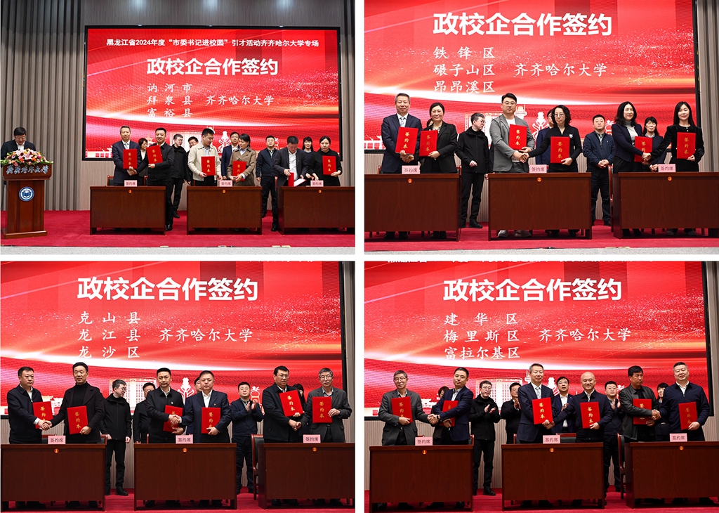 儀式上,齊齊哈爾大學與齊齊哈爾市12個縣區(qū)和企業(yè)進行了集中簽約。