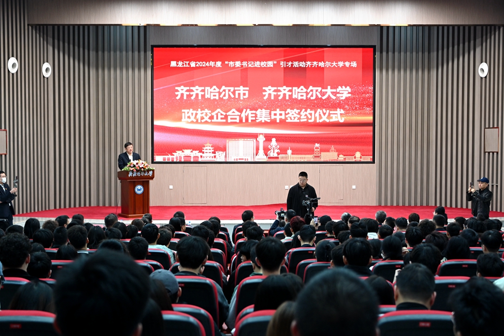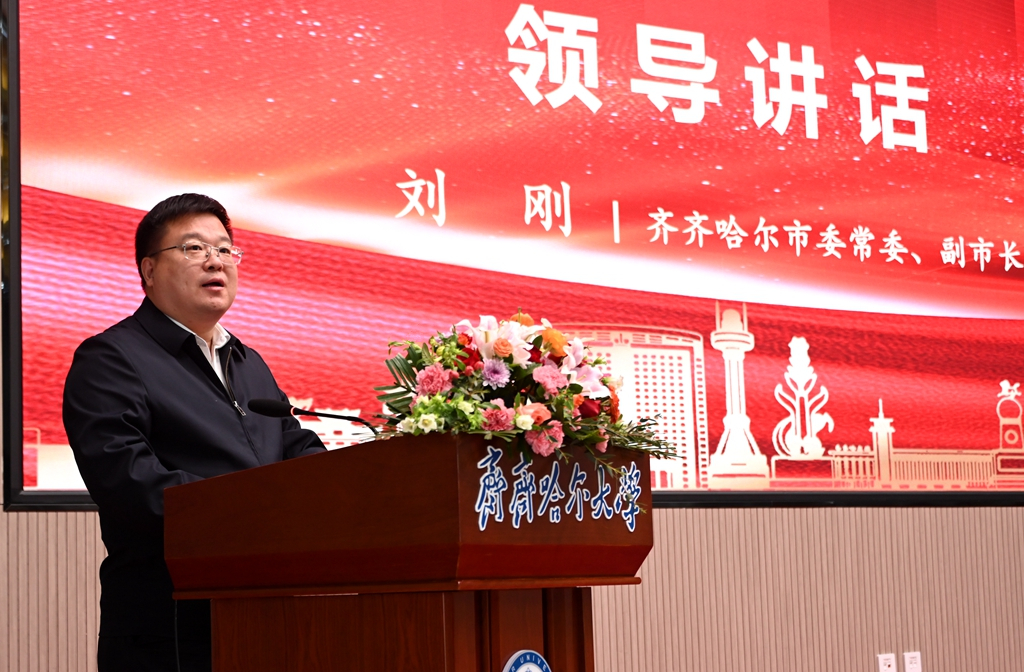 劉剛在致辭中表示,齊齊哈爾大學扎根齊齊哈爾辦學72年,已然成為齊齊哈爾重要的智力支撐高地、創(chuàng)新策源地和人才培養(yǎng)基地。自2022年市委市政府與齊齊哈爾大學簽訂第二輪市校戰(zhàn)略合作協(xié)議以來,雙方創(chuàng)新資源與產(chǎn)業(yè)資源進一步融合,圍繞環(huán)齊齊哈爾大學創(chuàng)新創(chuàng)業(yè)生態(tài)圈,在高層次人才引進、產(chǎn)業(yè)轉(zhuǎn)型升級、經(jīng)濟社會發(fā)展等方面取得了明顯成效,一批批科研項目順利落地轉(zhuǎn)化,產(chǎn)學研協(xié)作持續(xù)升溫??梢哉f,齊齊哈爾大學和齊齊哈爾市相融與共、融合發(fā)展的良好合作模式已經(jīng)形成。市委市政府將一如既往,在人才引育留用、畢業(yè)生留齊就業(yè)創(chuàng)業(yè)、科技成果就地轉(zhuǎn)化、打造更加舒心的學習生活環(huán)境等方面持續(xù)發(fā)力,全力支持齊齊哈爾大學向建設(shè)有特色高水平應用型綜合大學這個目標加快邁進。