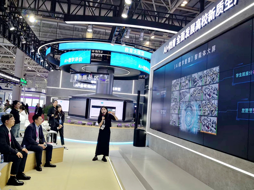 本屆高博會展覽面積達(dá)12萬余平米,參展企業(yè)近千家,展示產(chǎn)品涵蓋人工智能系統(tǒng)、智慧實驗室、智慧教室等多個領(lǐng)域,還設(shè)置了高校專區(qū)、兩岸融合發(fā)展成果展專區(qū)、人才專區(qū)等三個展區(qū)。
