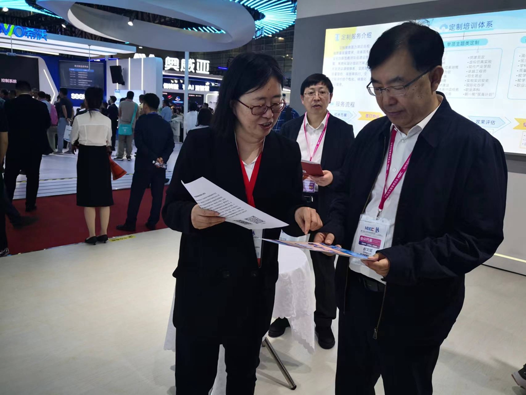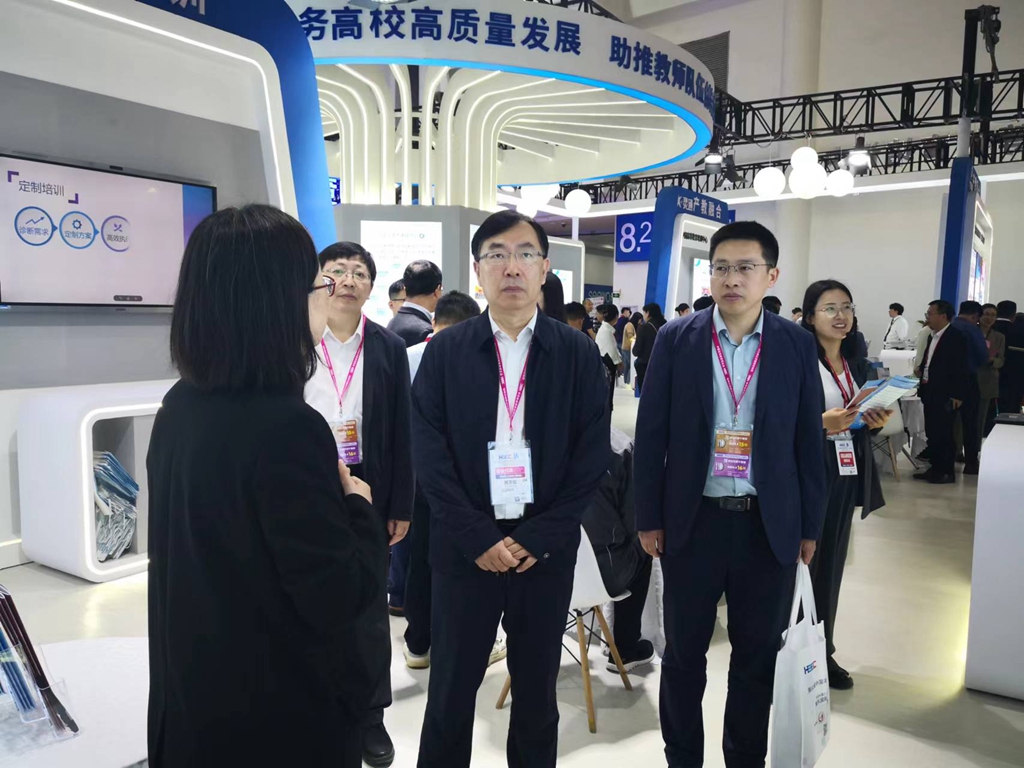 校長郝文斌及學(xué)校相關(guān)部門負(fù)責(zé)人,主要考察學(xué)習(xí)了“高校專區(qū)”和“高新裝備展區(qū)”及“特色專區(qū)”,并圍繞“AI+教育 全面發(fā)展高校新質(zhì)生產(chǎn)力”“智慧教育”“高校探索數(shù)字化轉(zhuǎn)型”等主題,與參展高校及高新裝備企業(yè)負(fù)責(zé)人進(jìn)行深入交流。