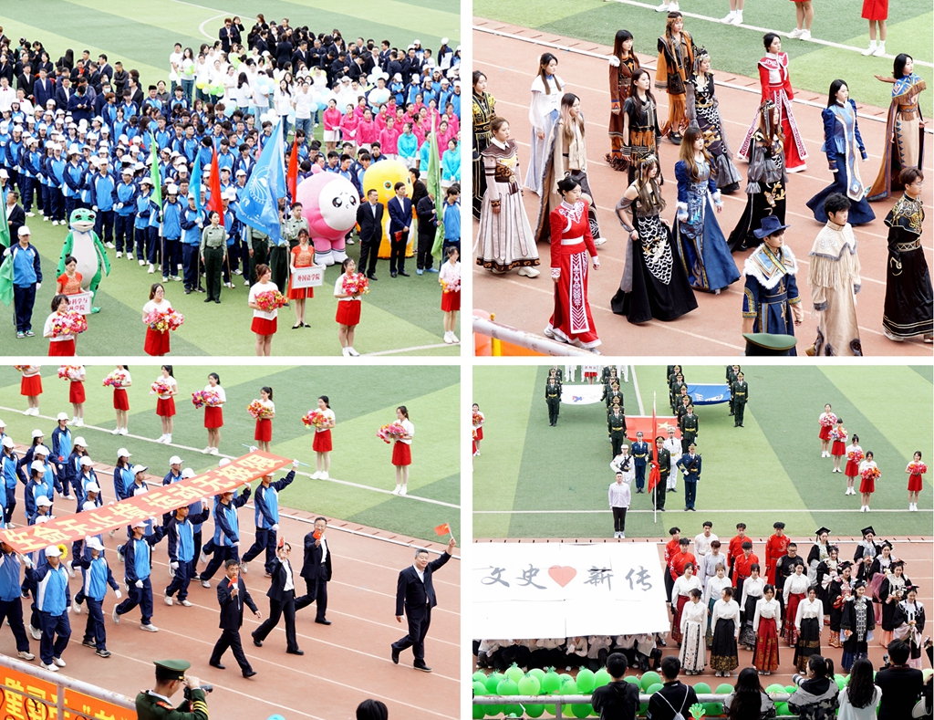 伴隨著雄壯的運(yùn)動(dòng)員進(jìn)行曲,包括前導(dǎo)隊(duì)、裁判員隊(duì)伍、各學(xué)院代表隊(duì)、少數(shù)民族學(xué)生代表隊(duì)在內(nèi)的33個(gè)檢閱隊(duì)伍依次走過主席臺(tái),接受大會(huì)檢閱。檢閱人員服裝整齊,精神飽滿,口號(hào)響亮,展現(xiàn)了齊大師生的靚麗風(fēng)采。