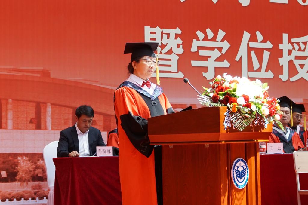 教師代表、文學(xué)與歷史文化學(xué)院(新聞傳播學(xué)院)李秀蓮教授為同學(xué)們送上真摯祝福。