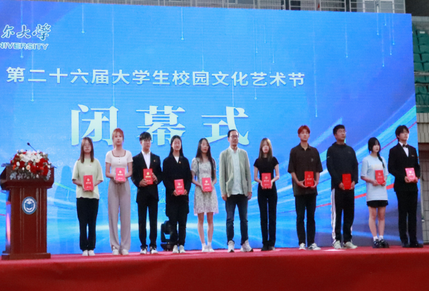 閉幕式上,學生工作部(學生處)部(處)長杜海權(quán)、校團委書記羅霄,研究生部黨委書記、主任荊濤分別宣讀了第二十六屆大學生校園文化藝術(shù)節(jié)校級活動獲獎名單、優(yōu)秀組織獎和突出貢獻獎名單和學校亞洲冬季運動會校園冬夢大使名單。