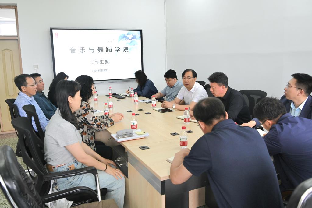 6月20日上午,校長(zhǎng)郝文斌在相關(guān)部門負(fù)責(zé)人陪同下,深入音樂(lè)與舞蹈學(xué)院調(diào)研指導(dǎo)學(xué)院工作,征詢學(xué)院干部師生對(duì)學(xué)校發(fā)展建設(shè)的意見建議。音樂(lè)與舞蹈學(xué)院領(lǐng)導(dǎo)班子成員、各系辦(中心)主任、學(xué)術(shù)骨干、研究生和本科生代表參加了調(diào)研座談會(huì)。