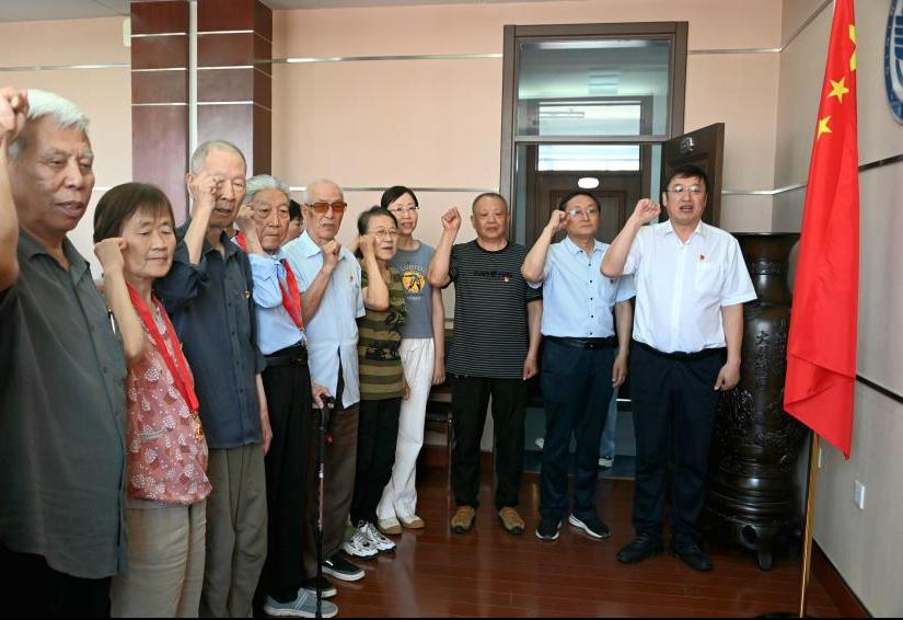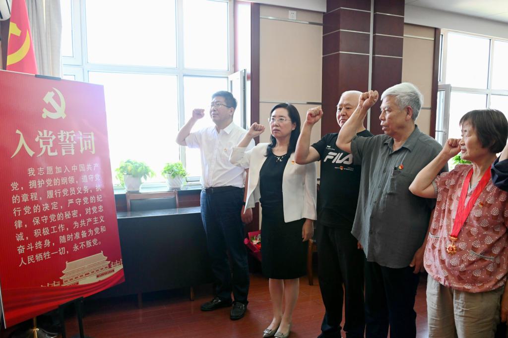 與會(huì)領(lǐng)導(dǎo)為“光榮在黨50年”紀(jì)念章獲得者、離退休黨支部書(shū)記代表、退休黨員代表敬獻(xiàn)鮮花,并一起重溫了入黨誓詞。