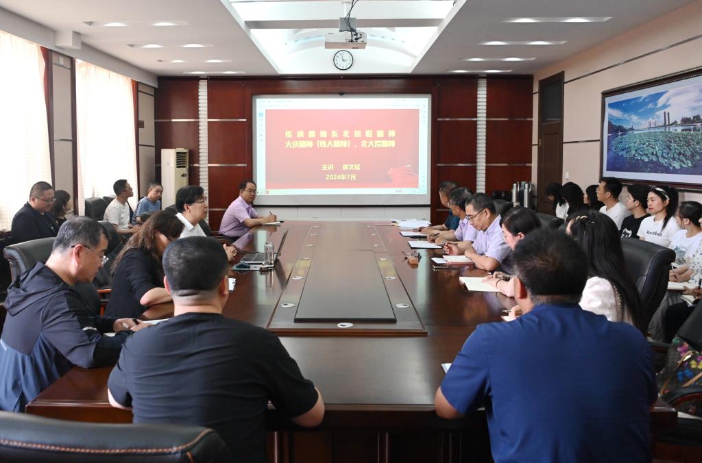 郝文斌以《傳承賡續(xù)東北抗聯(lián)精神、大慶精神(鐵人精神)、北大荒精神》為題,從感受艱難歲月、把握豐富內(nèi)涵,汲取豐厚滋養(yǎng)、獲得智慧啟迪,賡續(xù)精神血脈、激發(fā)奮進力量等三個方面進行了闡述。
