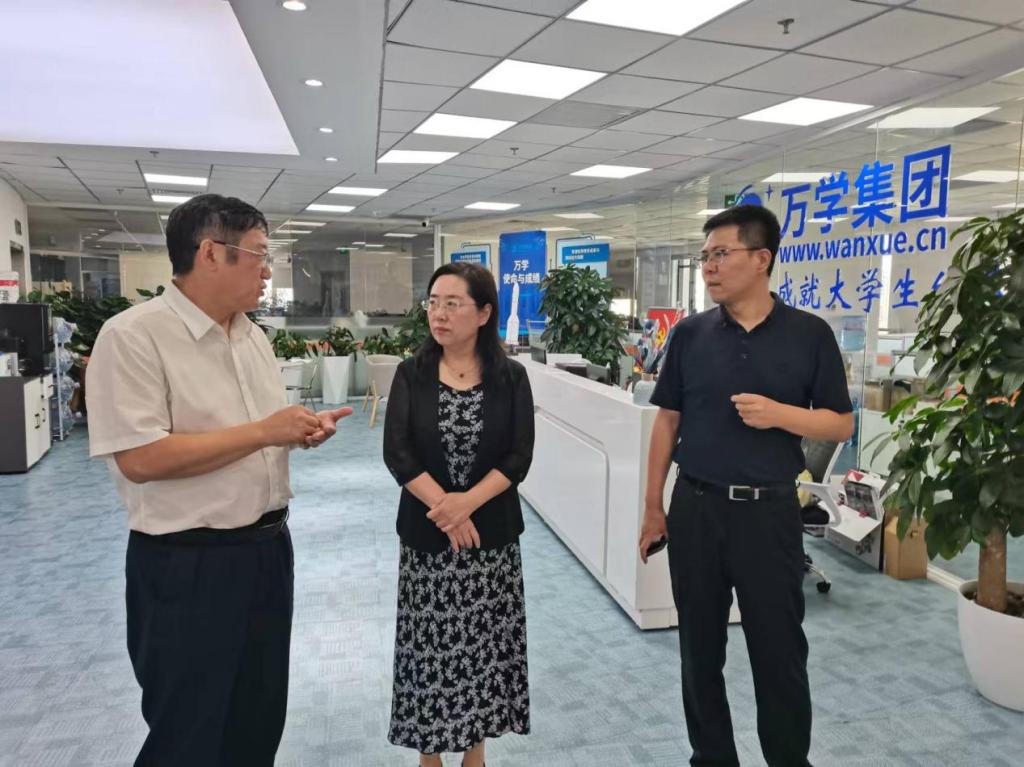 在北京萬(wàn)學(xué)教育科技有限公司,丁宏一行就職業(yè)發(fā)展精細(xì)規(guī)劃、核心職業(yè)能力培訓(xùn)、就業(yè)培訓(xùn)與深度服務(wù)、創(chuàng)新創(chuàng)業(yè)教育、先進(jìn)產(chǎn)業(yè)和專(zhuān)精特新人才培養(yǎng)、高校應(yīng)用型轉(zhuǎn)型發(fā)展等方面與副董事長(zhǎng)張強(qiáng)進(jìn)行了深入交流。