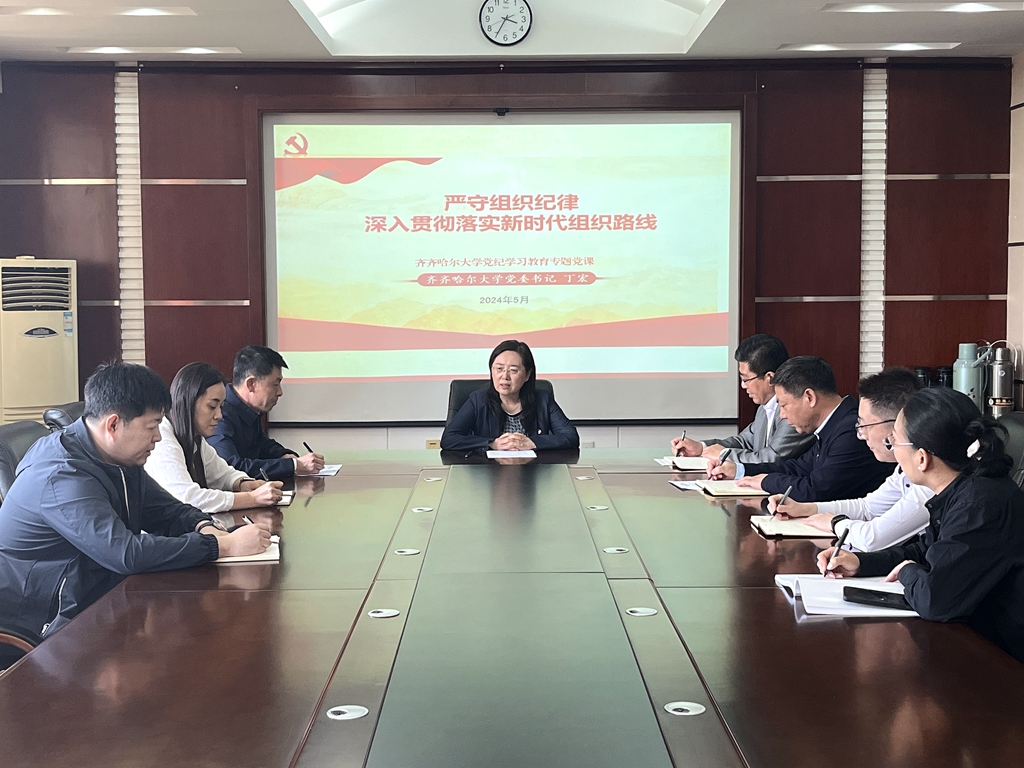齊齊哈爾大學(xué)黨委把開展黨紀(jì)學(xué)習(xí)教育作為一項(xiàng)重要政治任務(wù)緊抓不放,認(rèn)真落實(shí)黨中央和省委關(guān)于開展黨紀(jì)學(xué)習(xí)教育的部署要求,堅(jiān)持黨紀(jì)學(xué)習(xí)教育與強(qiáng)化理論武裝相結(jié)合,與落實(shí)省委巡視整改任務(wù)相結(jié)合、與深化新時(shí)代廉潔文化建設(shè)相結(jié)合、與整章建制相結(jié)合,高站位、高標(biāo)準(zhǔn)、高質(zhì)量持續(xù)推進(jìn)黨紀(jì)學(xué)習(xí)教育,持續(xù)推動(dòng)黨紀(jì)學(xué)習(xí)教育學(xué)在深處、落在實(shí)處、治在嚴(yán)處。