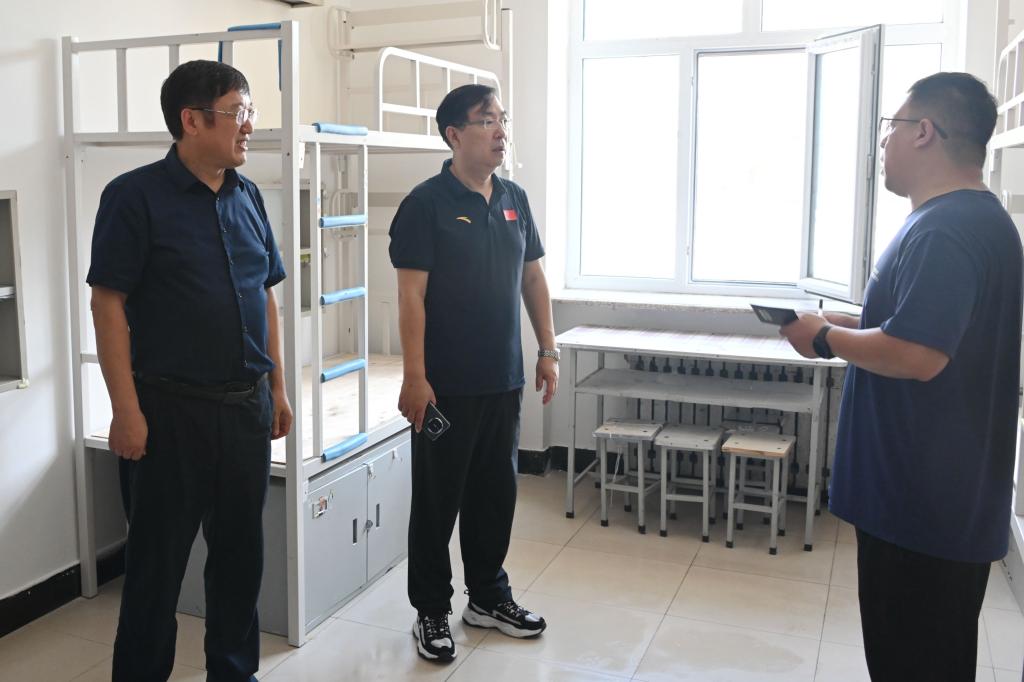 8月15日上午,校長(zhǎng)郝文斌在黨委副書記張文治、副校長(zhǎng)王剛的陪同下深入學(xué)生公寓檢查指導(dǎo)開學(xué)準(zhǔn)備工作,學(xué)校辦公室、學(xué)生工作部(學(xué)生處)、財(cái)務(wù)處、國(guó)有資產(chǎn)管理處、審計(jì)處、后勤管理處等相關(guān)部門負(fù)責(zé)人參加。