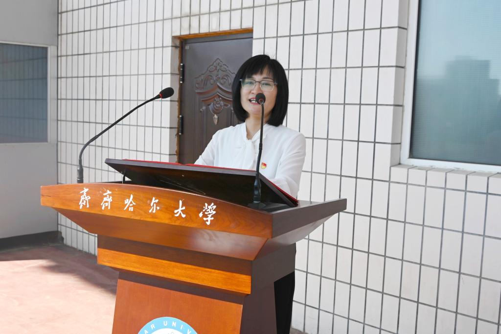 教師代表、黑龍江省青年教學(xué)名師、齊齊哈爾市第十屆青年五四獎?wù)芦@得者、生命科學(xué)與農(nóng)林學(xué)院副院長、李珊珊教授發(fā)言。她代表全體教師歡迎新生加入齊大大家庭,她表示,同學(xué)們對美好大學(xué)生活的向往,就是老師們的期望,全體教師將傾聽同學(xué)們的聲音,用心用情陪伴同學(xué)們成長。她希望大家堅定奮斗目標(biāo)、刻苦學(xué)習(xí)鉆研、矢志科技報國,努力成為齊大精神的傳承者,為推進(jìn)學(xué)校有特色高水平應(yīng)用型綜合性大學(xué)建設(shè),添磚加瓦、增光添彩。