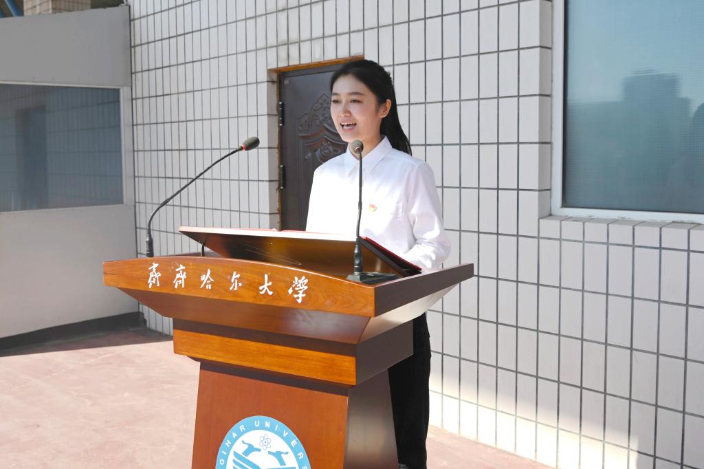 開學(xué)典禮上,舉行了新生佩戴齊齊哈爾大學(xué)校徽儀式,校領(lǐng)導(dǎo)為新生代表佩戴了齊齊哈爾大學(xué)?;?。承載期許的齊大?;詹粌H是一份責(zé)任和擔(dān)當(dāng)?shù)南笳鳎菍W(xué)校對同學(xué)們未來學(xué)業(yè)與人生旅程的美好祝愿。