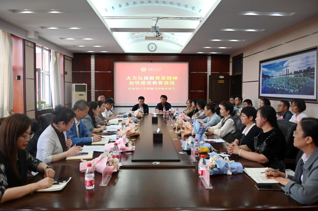 秋韻無邊恩師在,教壇芬芳自不同。9月4日下午,學校在辦公樓504會議室召開“大力弘揚教育家精神,加快建設教育強國”慶祝第40個教師節(jié)教師代表座談會。黨委書記丁宏、黨委副書記齊宏偉,黨委常委、副校長叢喜權(quán)出席座談會,人事處(黨委教師工作部)、教務處、科研處、研究生部等職能部門負責人以及來自學校教學一線的18位教師代表參加會議,會議由叢喜權(quán)主持。