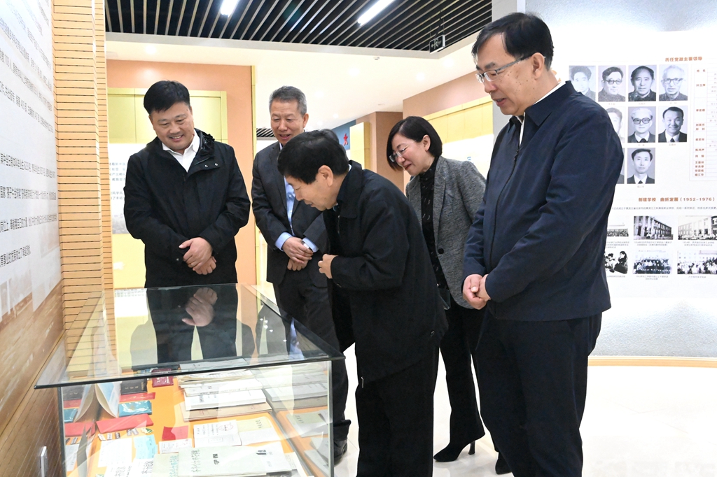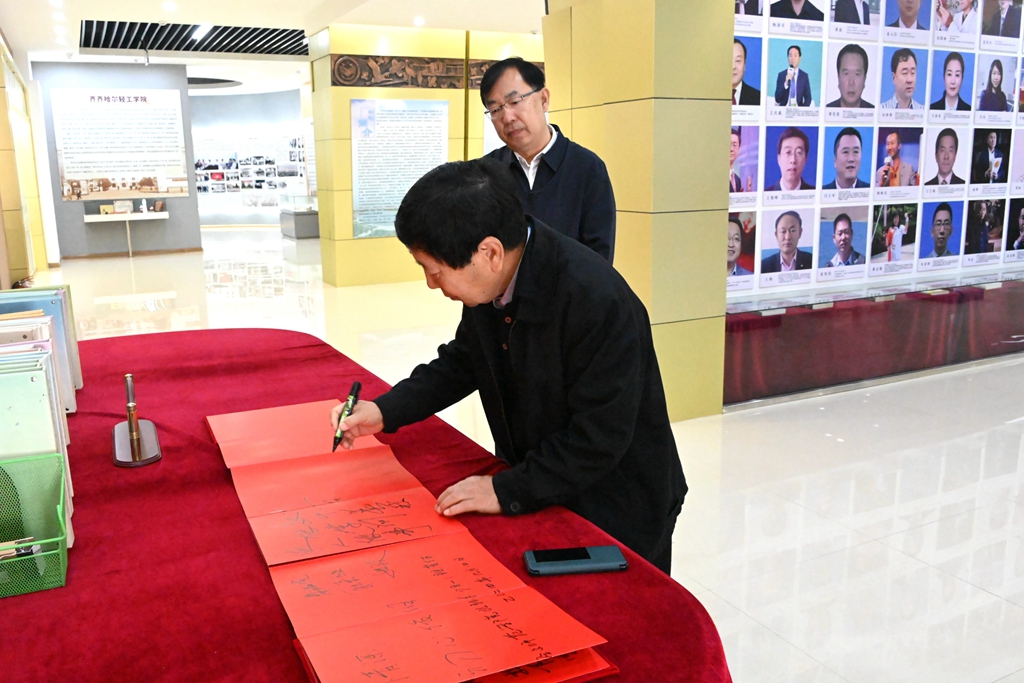 在郝文斌等陪同下,佟延成校友參觀了校史館,在校史展板前不時停留駐足,感恩母校培養(yǎng),并在留言簿上寄語學校:“做人做事做學問,數(shù)十春秋如一日”,表達了對母校的美好祝愿和殷切期待!
