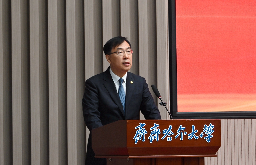 郝文斌在講話中代表學校,以“踐行新質生產力理念,彰顯科研優(yōu)勢特色,加快建設有特色高水平應用型綜合性大學”為題,從近五年科研工作的主要成效、目前科研工作存在的問題、未來三年科研工作部署三個方面,作了科研工作報告。郝文斌指出,五年來,學??蒲泄ぷ鲌猿謫栴}導向、需求導向、產業(yè)導向,聚焦國家戰(zhàn)略需求和區(qū)域經濟社會發(fā)展,立足服務創(chuàng)新龍江建設和“4567”現(xiàn)代產業(yè)體系,加強基礎研究、強化應用研究,以提升學??茖W研究水平和服務區(qū)域經濟社會發(fā)展能力為目標,在自主創(chuàng)新能力、科技成果轉化、高層級獎項等方面取得突破性進展和重要標志性成果。未來三年學??蒲泄ぷ鞯目傮w思路:深入學習貫徹習近平總書記關于科技創(chuàng)新和哲學社會科學重要論述,認真貫徹全國科技大會、全國教育大會精神,按照全省科技大會、科學技術獎勵大會工作部署:一是要明確科研主攻方向,深化科技創(chuàng)新與產業(yè)創(chuàng)新;二是要謀劃“大”項目,找準科研突破口;三是要建“真”團隊,解決“真”問題;四是深刻洞察并精準把握黨和國家政策指向,緊扣國家戰(zhàn)略和區(qū)域發(fā)展需求,確保“十五五”科研規(guī)劃的前瞻性與系統(tǒng)性,為高質量發(fā)展注入源源不斷的創(chuàng)新動力。他從強化有組織科研、加強應用研究、建強科研平臺等七個方面,進行了工作部署,希望廣大科研工作者深入踐行新質生產力理念,為加快實現(xiàn)國家高水平科技自立自強貢獻齊大智慧和力量!
