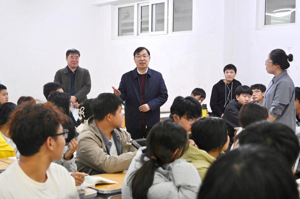 課堂上,郝文斌認(rèn)真聽課、仔細(xì)記錄,傾聽?zhēng)熒?dòng)交流,課后與授課教師就如何精準(zhǔn)把握課程教學(xué)方法、提升教學(xué)效果等進(jìn)行深入探討,并提出了有針對(duì)性的指導(dǎo)意見。