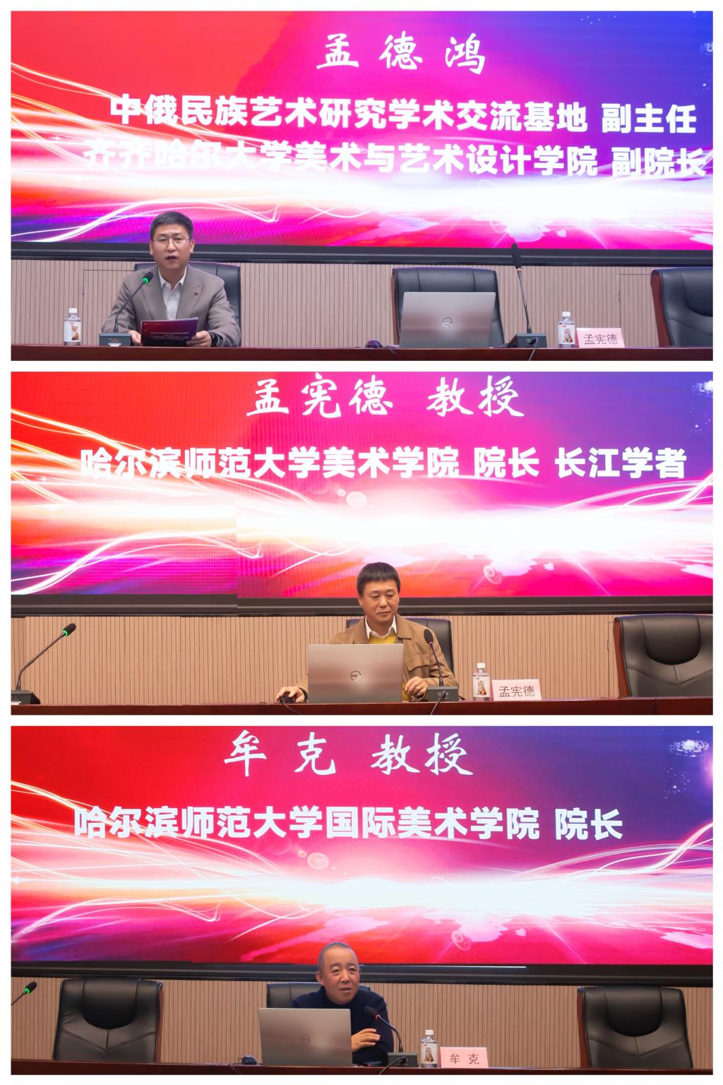 成立大會結(jié)束后,省中俄民族藝術(shù)研究學(xué)術(shù)交流基地副主任、我校美術(shù)與藝術(shù)設(shè)計(jì)學(xué)院副院長孟德鴻主持“數(shù)智創(chuàng)意設(shè)計(jì)·冰雪藝術(shù)創(chuàng)作——中俄民族藝術(shù)研究”龍江社科學(xué)術(shù)論壇。孟憲德教授、牟克教授分別作了題為《繪畫藝術(shù)創(chuàng)作的幾點(diǎn)因素》《中俄美術(shù)發(fā)展現(xiàn)狀》的學(xué)術(shù)講座。此次學(xué)術(shù)講座作為龍江社科學(xué)術(shù)論壇活動之一,是省社科聯(lián)貫徹落實(shí)黨的二十屆三中全會精神、聚焦新質(zhì)生產(chǎn)力研究、賦能龍江高質(zhì)量發(fā)展的重點(diǎn)學(xué)術(shù)活動。講座在中俄民族藝術(shù)研究的框架下,從不同角度研究了詮釋了文化藝術(shù)研究的新路徑,開啟了數(shù)智創(chuàng)意設(shè)計(jì)、冰雪藝術(shù)創(chuàng)作的新篇章,為發(fā)掘中俄民族藝術(shù)的精華,推進(jìn)兩國文化藝術(shù)的發(fā)展與繁榮貢獻(xiàn)了社科力量。
