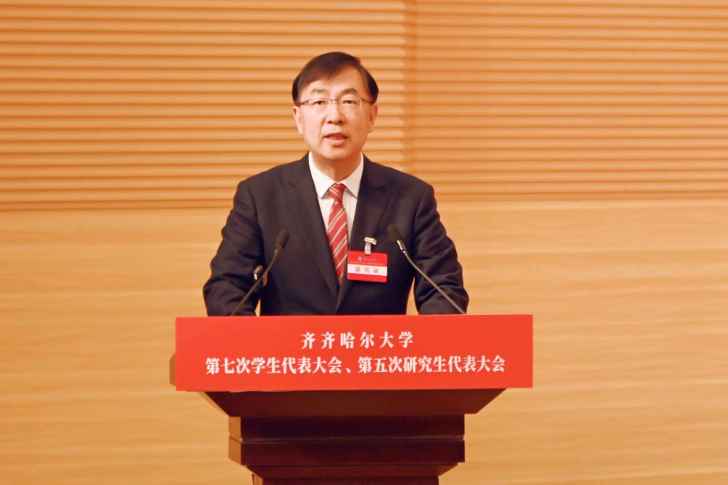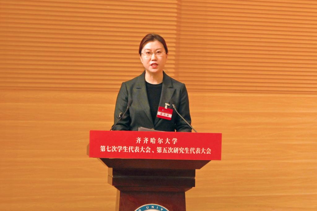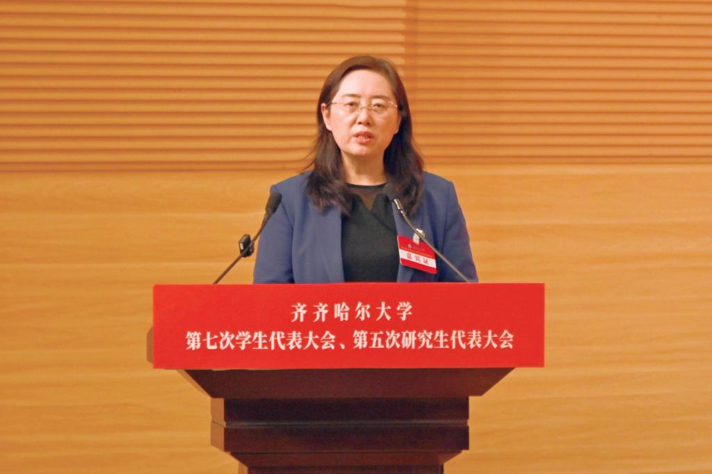 黨委書記丁宏代表學(xué)校黨委向大會(huì)的召開表示熱烈祝賀,向各位領(lǐng)導(dǎo)、來賓的到來表示誠摯歡迎,向各位代表和廣大青年學(xué)生致以親切的問候!她指出,學(xué)生代表大會(huì)、研究生代表大會(huì)是學(xué)校聯(lián)系學(xué)生的橋梁和紐帶,是學(xué)生參與學(xué)校民主管理和民主監(jiān)督的重要組織形式。她強(qiáng)調(diào),各位學(xué)生代表要以飽滿的政治熱情和嚴(yán)肅的工作態(tài)度,認(rèn)真履行職責(zé),積極為學(xué)校事業(yè)高質(zhì)量發(fā)展獻(xiàn)計(jì)獻(xiàn)策、貢獻(xiàn)力量;廣大青年學(xué)生要堅(jiān)定不移聽黨話、跟黨走,堅(jiān)定理想信念,勤奮刻苦學(xué)習(xí),勇于擔(dān)當(dāng)作為,自覺律己示范,用實(shí)際行動(dòng)踐行“請(qǐng)黨放心,強(qiáng)國有我”的錚錚誓言,以優(yōu)異表現(xiàn)彰顯齊大學(xué)子斗志昂揚(yáng)的精神風(fēng)貌,讓青春在中國式現(xiàn)代化的實(shí)踐中綻放絢麗之花!