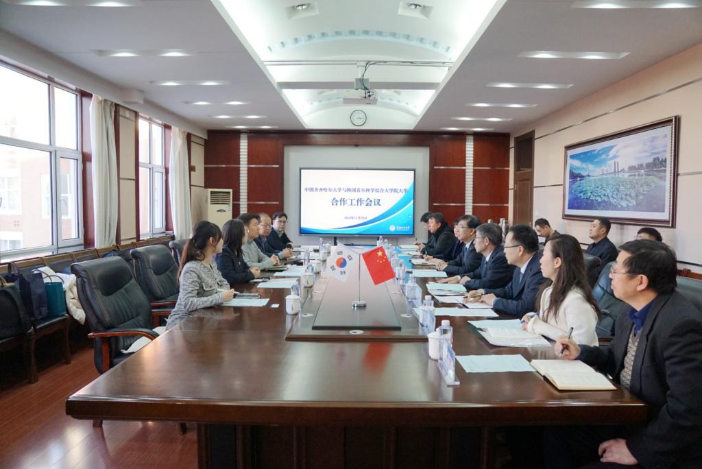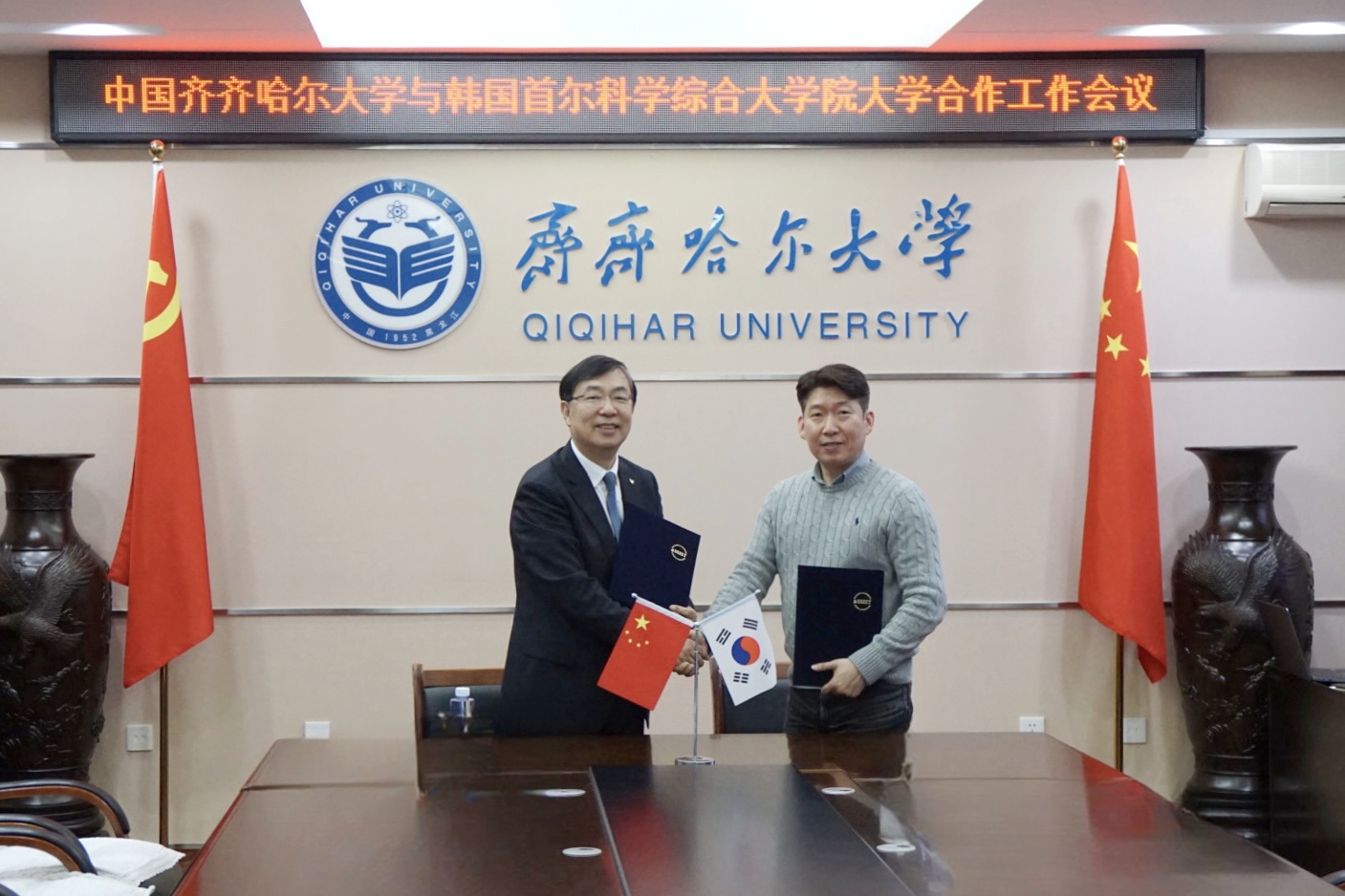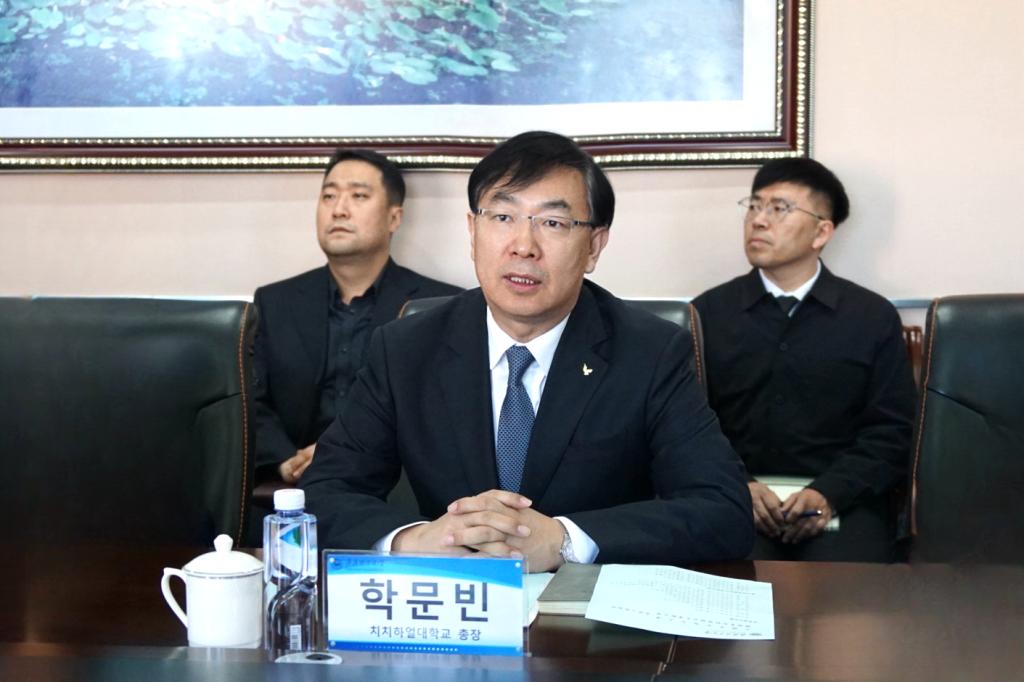 郝文斌期望此次交流會議能夠成為加強兩校合作的重要契機,并對下一步重點合作領(lǐng)域提出建議:一是加強校際學(xué)生交流,促進互學(xué)互鑒。開展碩士短期交流項目、冬夏令營研學(xué)項目等,增進學(xué)生間的互動與理解,為推動區(qū)域內(nèi)國家之間的友好合作作出積極貢獻。二是開展碩士、博士項目,貫通本碩博人才培養(yǎng)通道。通過開展碩士雙學(xué)位項目、博士項目,貫通碩博人才培養(yǎng)通道,推動對韓合作形成機制化、常態(tài)化人才培養(yǎng)體系。三是深化學(xué)術(shù)交流,實現(xiàn)優(yōu)勢學(xué)科互補。依托雙方優(yōu)勢學(xué)科資源,兩校專家學(xué)者深化交流合作,共同推動科研創(chuàng)新與學(xué)科建設(shè)。四是舉辦中外合作辦學(xué)項目,推動兩校合作向高水平發(fā)展。在兩校已有合作基礎(chǔ)上,適時啟動碩士層面中外合作辦學(xué)項目申報,培養(yǎng)高水平國際化復(fù)合型人才,推動兩校合作向高水平發(fā)展。五是搭建文化交流平臺,增進文明交流互鑒。齊齊哈爾大學(xué)歷史文化底蘊深厚、特色優(yōu)勢鮮明、充滿發(fā)展?jié)摿Γㄟ^兩校多領(lǐng)域交流合作,促進彼此相互了解,深化友誼,增進文化認(rèn)同與尊重,促進中韓兩國世代友好。