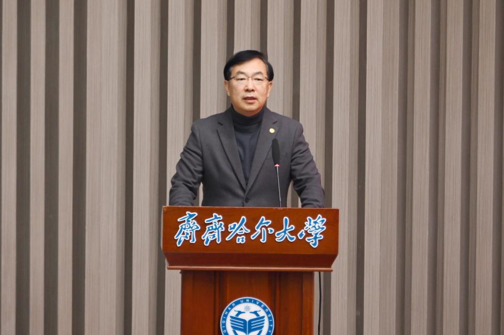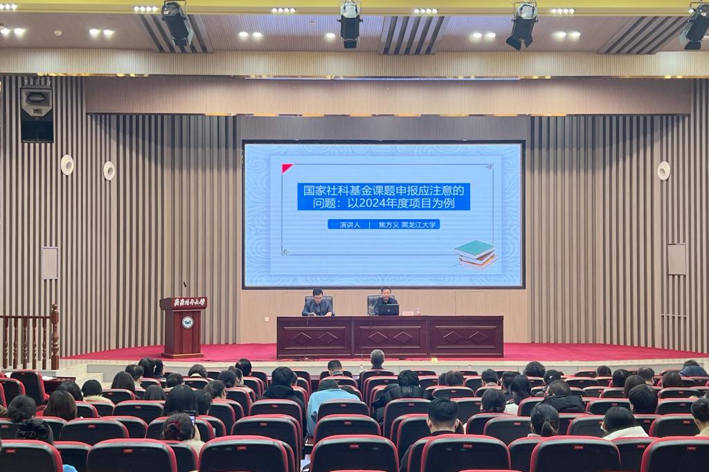 動員會后,我校邀請國內(nèi)知名社科專家,黑龍江大學(xué)新質(zhì)生產(chǎn)力研究院院長、龍江學(xué)者焦方義教授,為我校教師就國家社科基金項目申報進行專場輔導(dǎo)。