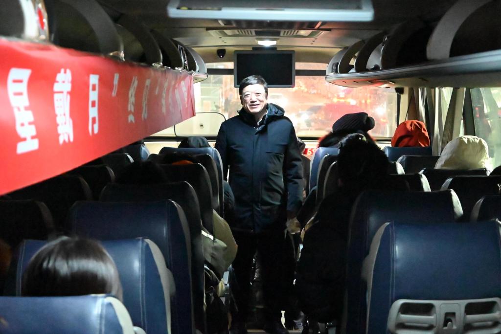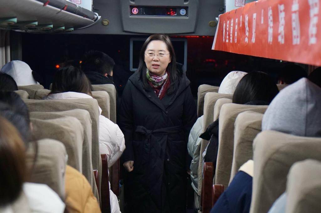 發(fā)車前,校黨委書記丁宏,校長(zhǎng)、黨委副書記郝文斌,黨委副書記張文治親臨現(xiàn)場(chǎng),為即將踏上征程的學(xué)子們加油鼓勁,送上最誠摯的祝福與深切的期望。校領(lǐng)導(dǎo)們走上大巴車,與學(xué)子們親切交流,鼓勵(lì)大家保持平和心態(tài),全力以赴,發(fā)揮出最佳水平。車廂內(nèi),笑聲與感動(dòng)交織,考生們的臉上洋溢著自信與幸福的笑容,這份來自母校的溫暖,為他們的緊張心情增添了安定與力量。