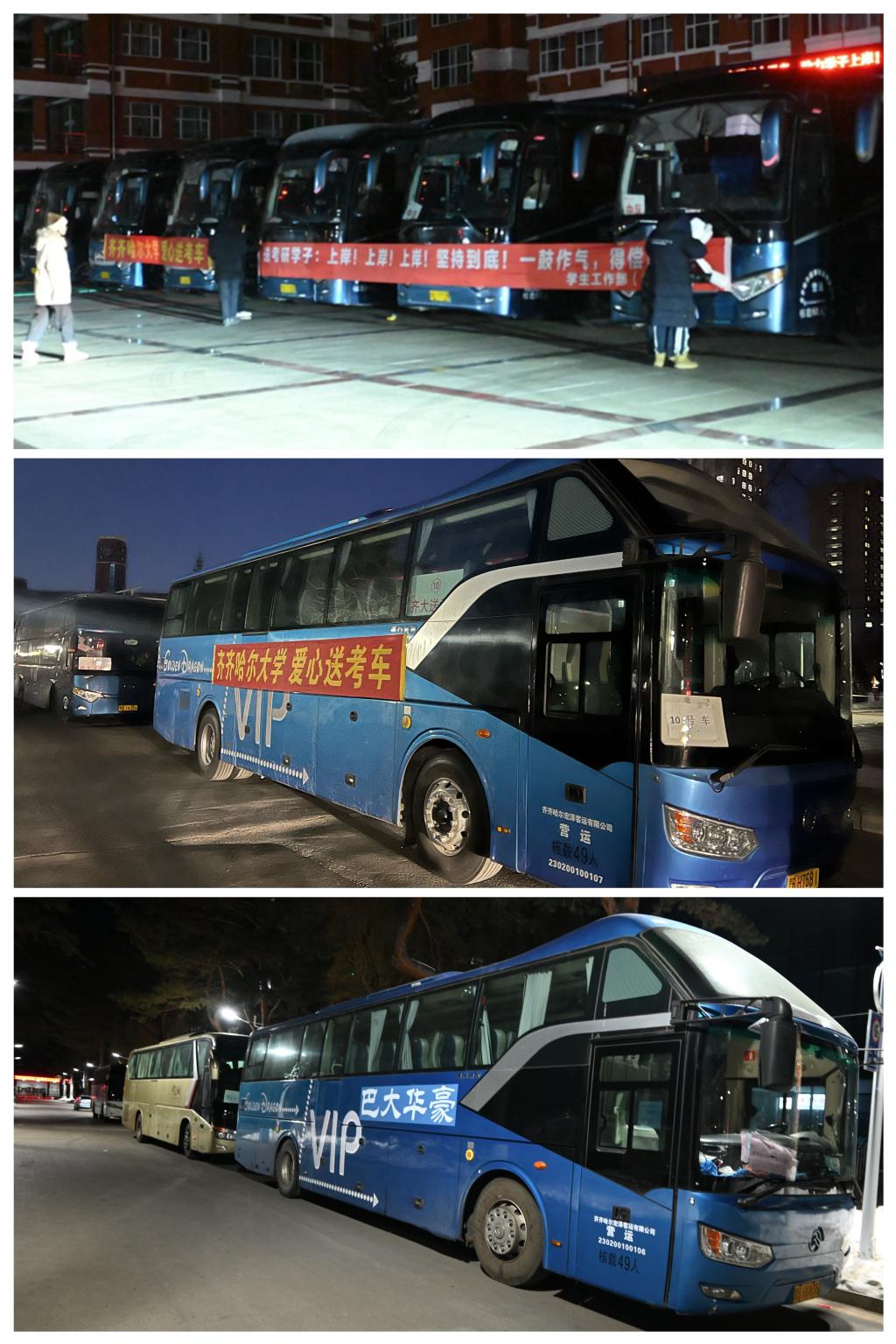 12月21日,2025年全國碩士研究生招生考試開考,我校精心籌備的“愛心送考”行動(dòng)也隨之溫暖啟動(dòng)。清晨6點(diǎn),校園內(nèi)已是一片井然有序、斗志昂揚(yáng)的景象。一輛輛裝飾著鼓勵(lì)標(biāo)語和溫馨寄語的大巴車整齊排列,等待著將考研學(xué)子安全送達(dá)考點(diǎn)。