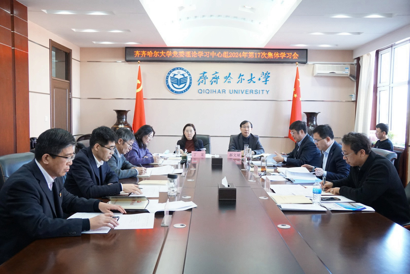 12月25日下午,學(xué)校黨委理論學(xué)習中心組在辦公樓504會議室召開2024年第17次集體學(xué)習(擴大)會,專題學(xué)習習近平總書記關(guān)于推動高質(zhì)量發(fā)展的重要論述。校黨委書記丁宏主持會議并講話。學(xué)校黨委理論學(xué)習中心組全體成員參加學(xué)習會。