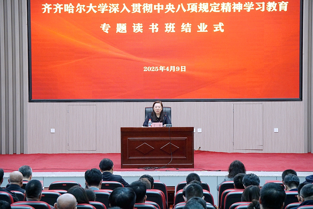 4月9日下午,學(xué)校在日新大廈四樓報(bào)告廳舉行黨委理論學(xué)習(xí)中心組集體學(xué)習(xí)暨深入貫徹中央八項(xiàng)規(guī)定精神學(xué)習(xí)教育專題讀書班結(jié)業(yè)式。校黨委書記丁宏主持結(jié)業(yè)式并講話。