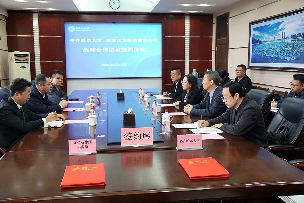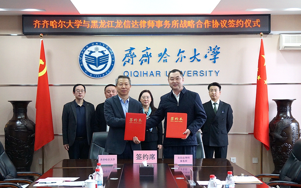 5月16日上午,齊齊哈爾大學(xué)與黑龍江龍信達(dá)律師事務(wù)所戰(zhàn)略合作簽約儀式在學(xué)校辦公樓504會議室舉行。省政協(xié)常委、律師協(xié)會副會長、黑龍江龍信達(dá)律師事務(wù)所主任張鐵,副主任、學(xué)校優(yōu)秀校友謝桐平,合伙人任守一,校黨委書記丁宏,副校長、黨委常委叢喜權(quán)等共同出席簽約儀式。